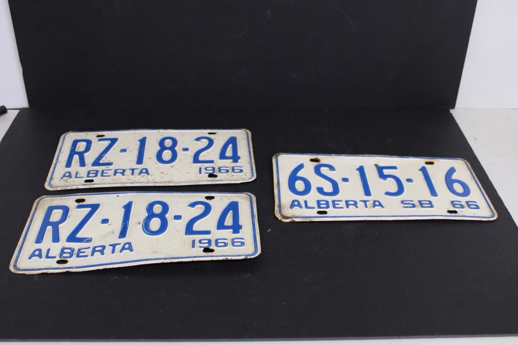 (3) Alberta License Plates - Pair of 1966 and Single 1966