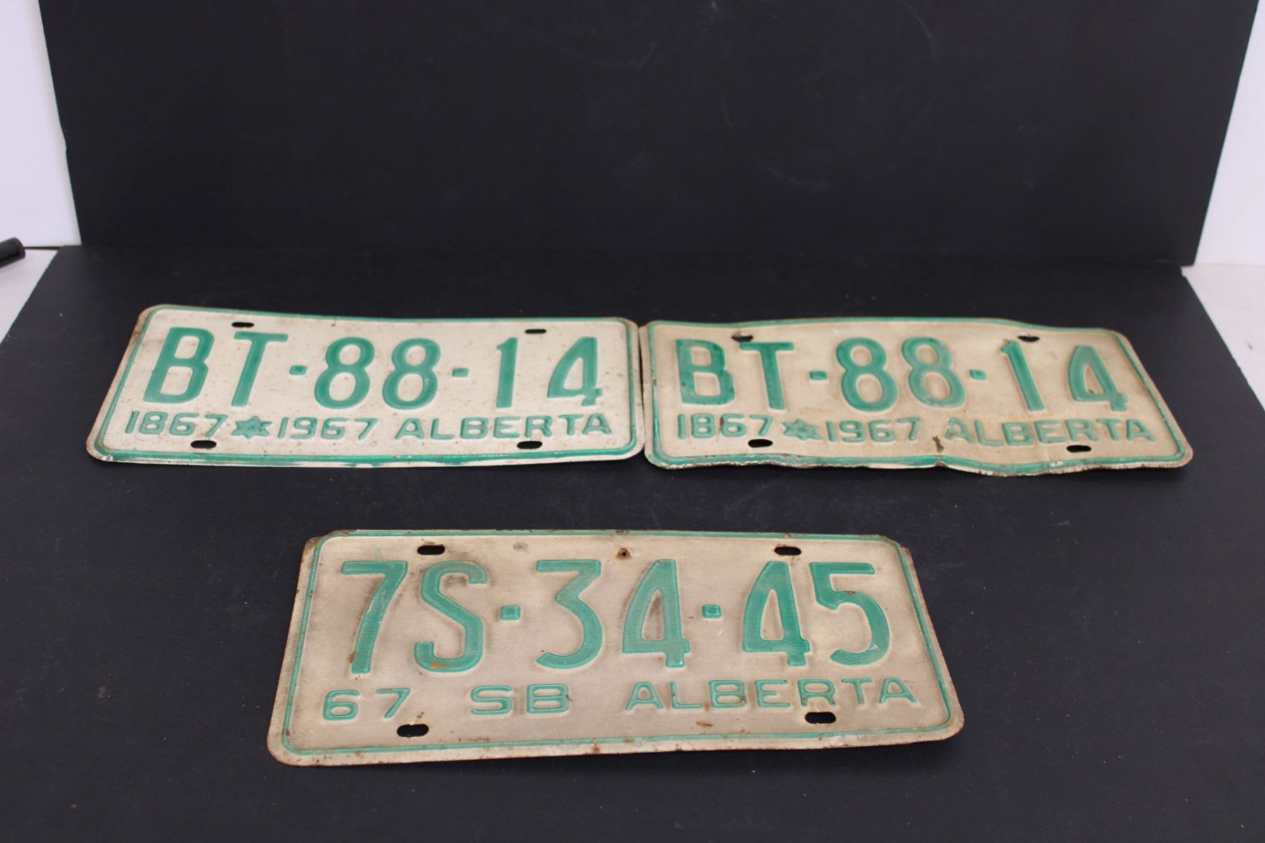(3) Alberta License Plates - Pair of 1967 and Single 1967