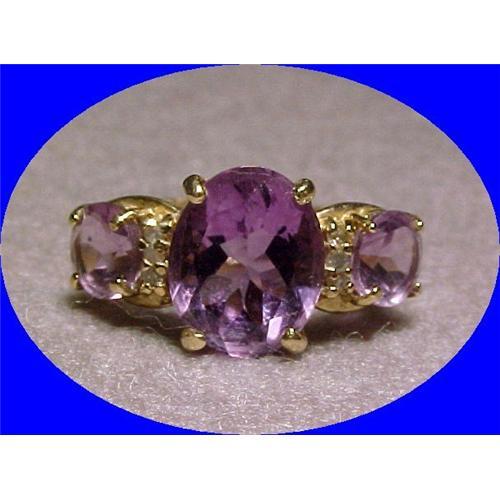 <tr><td>Title:3 Amethyst Stones & 6 Diamonds GOLD RING </td></tr>