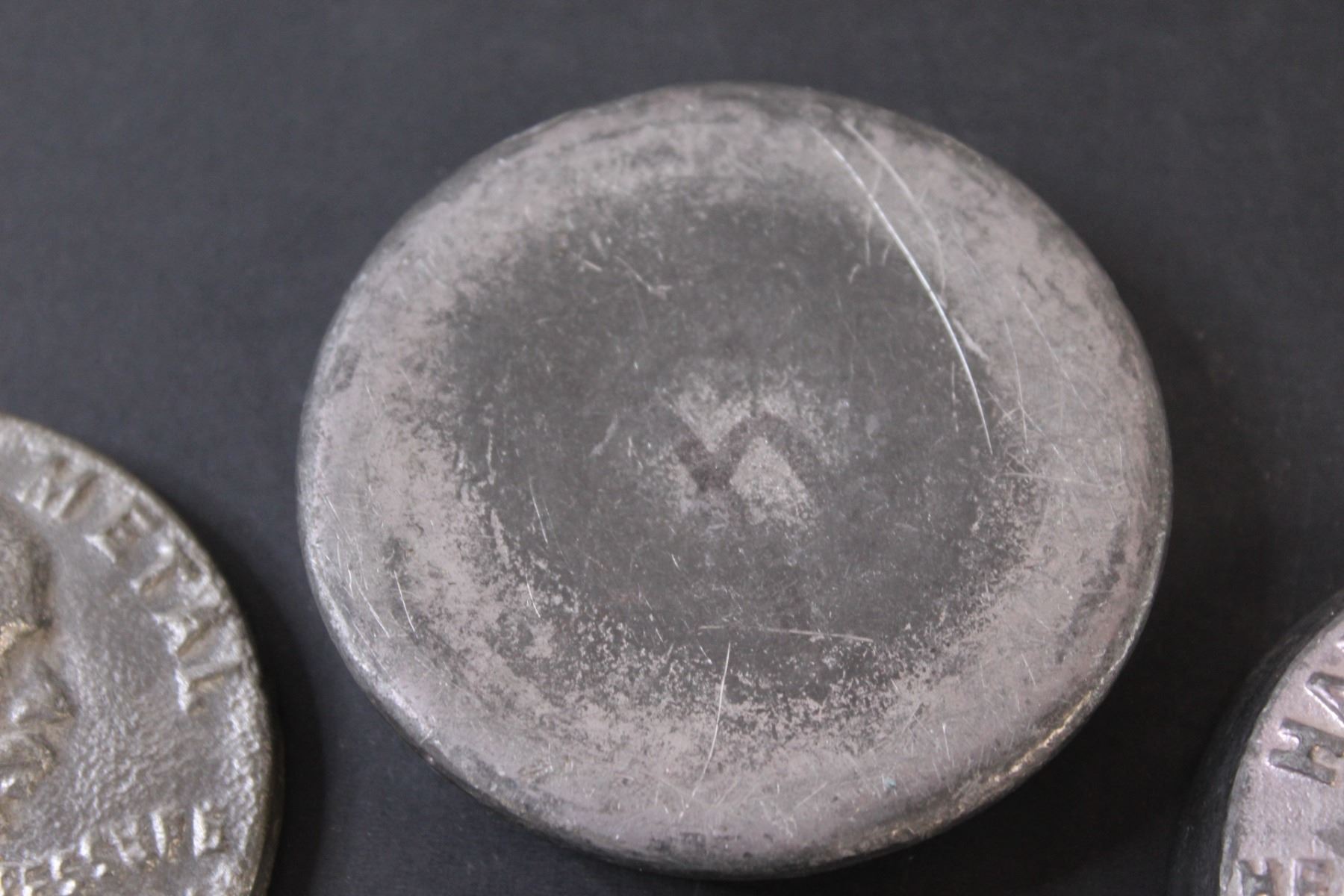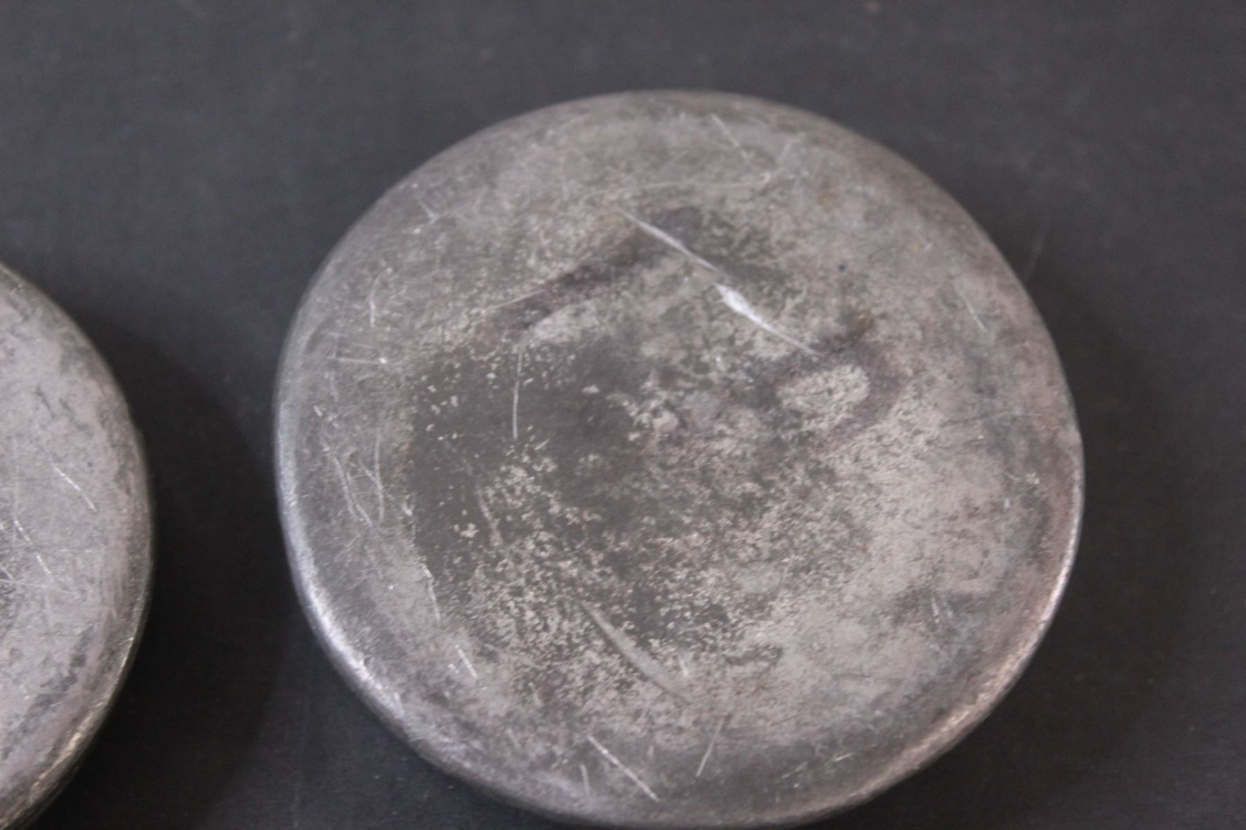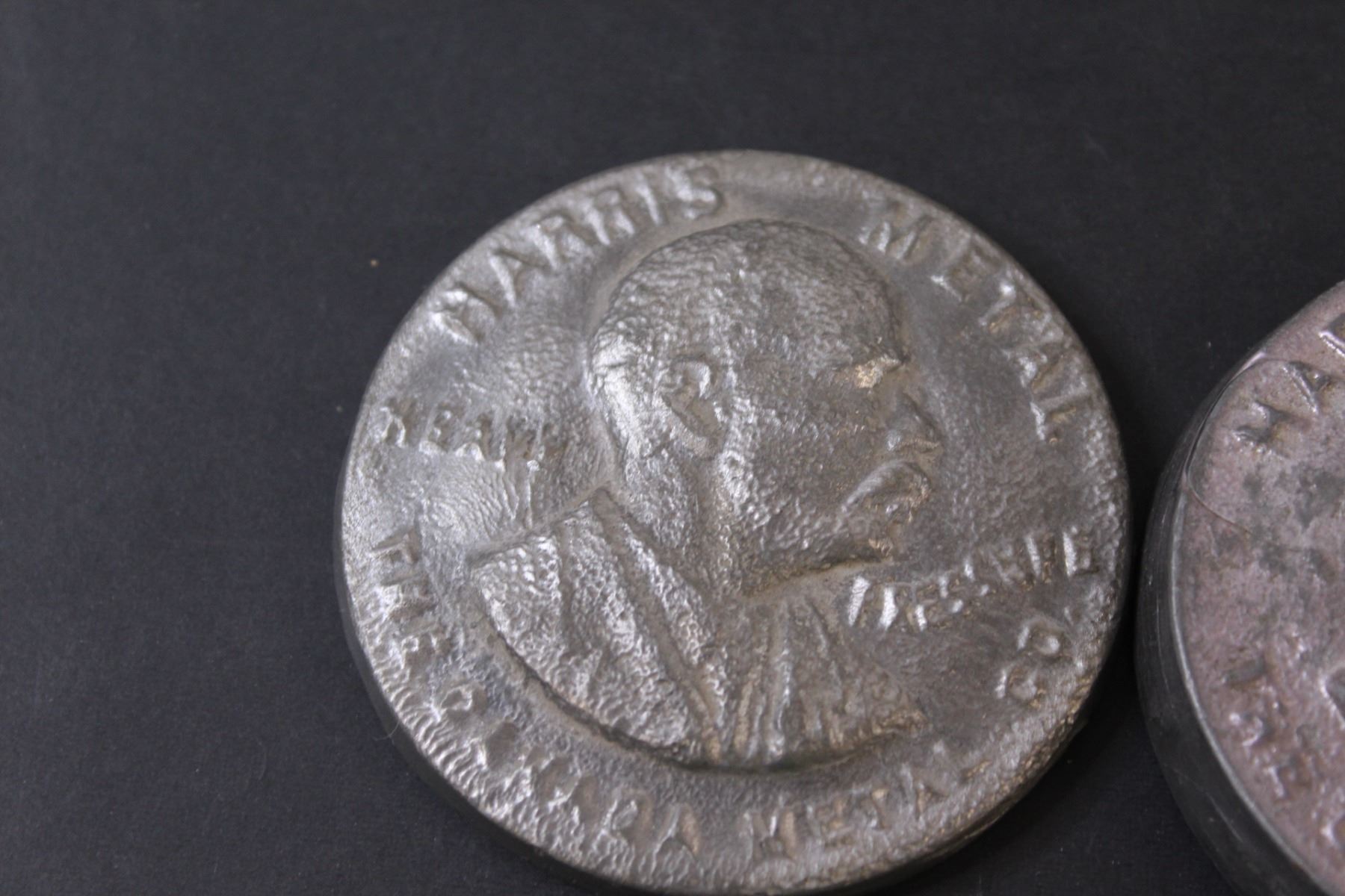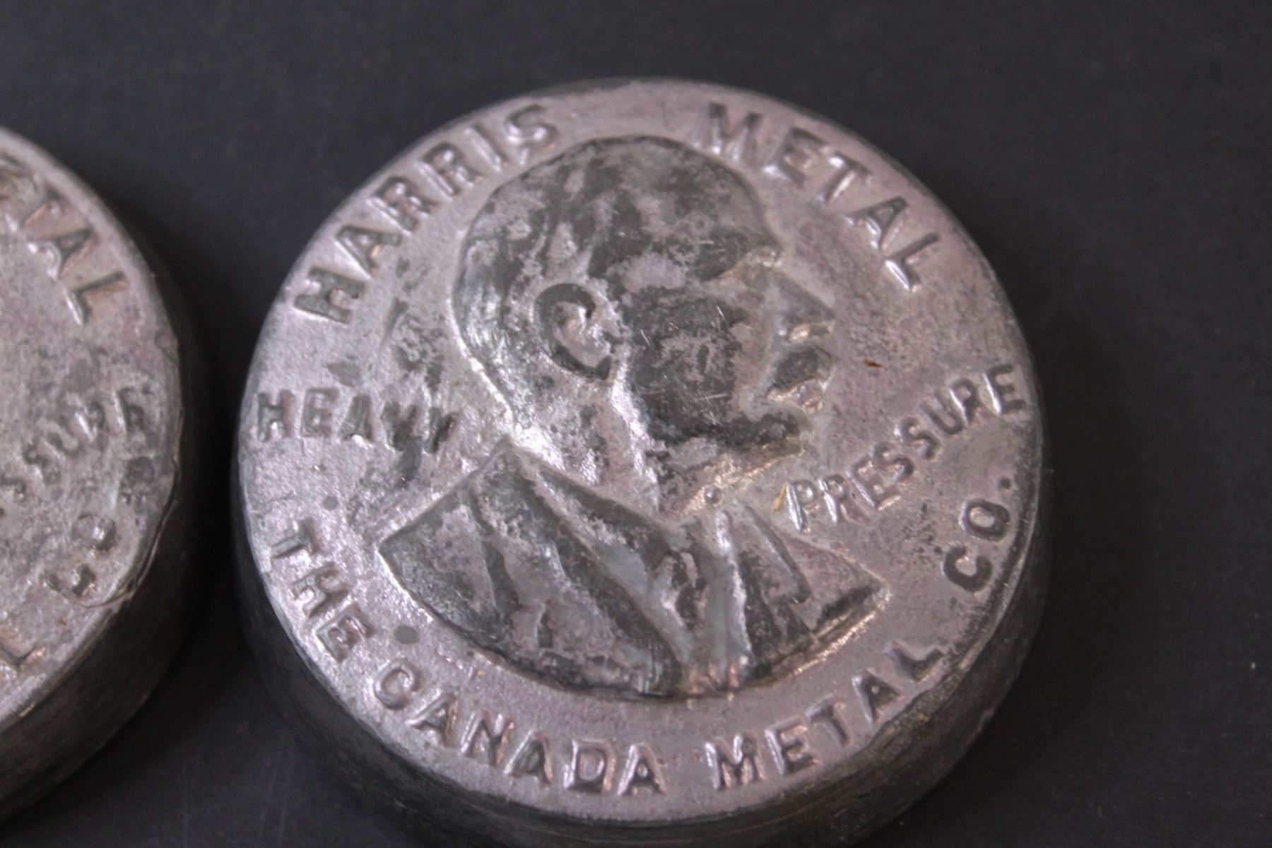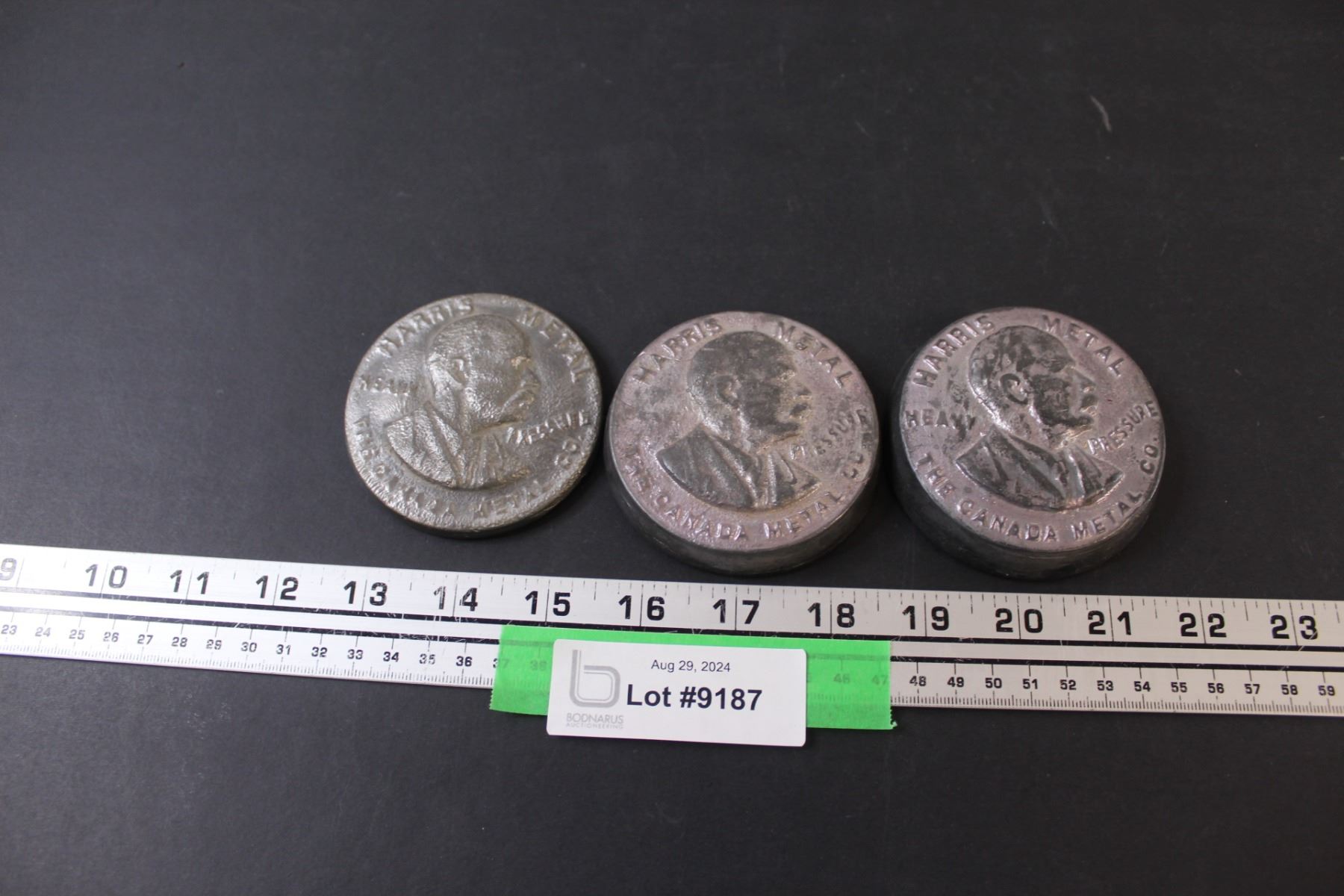 (3) Antique Harris Metal Advertising Paperweights - 3" Diameter