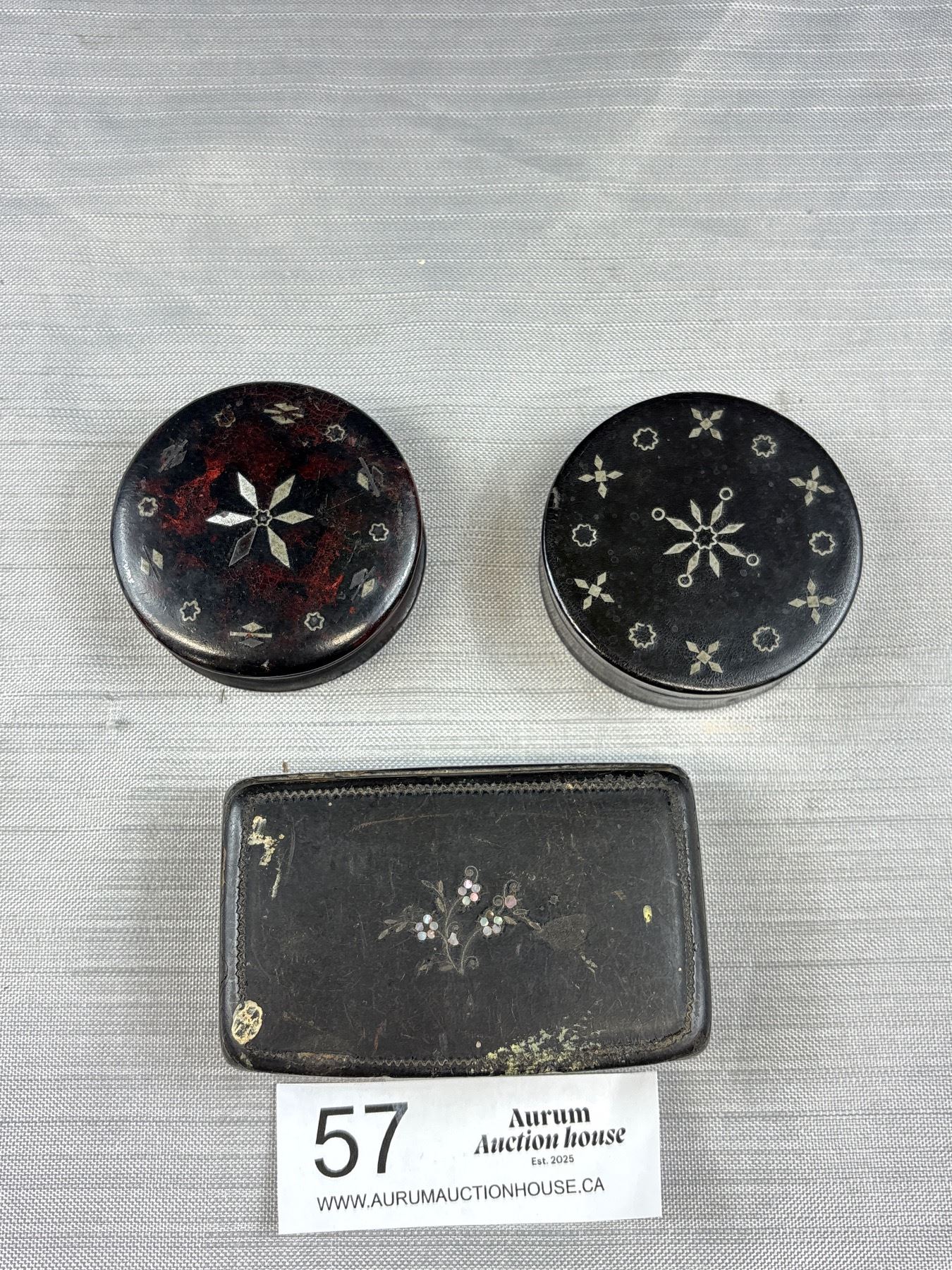 3 Antique Inlaid Snuff Boxes