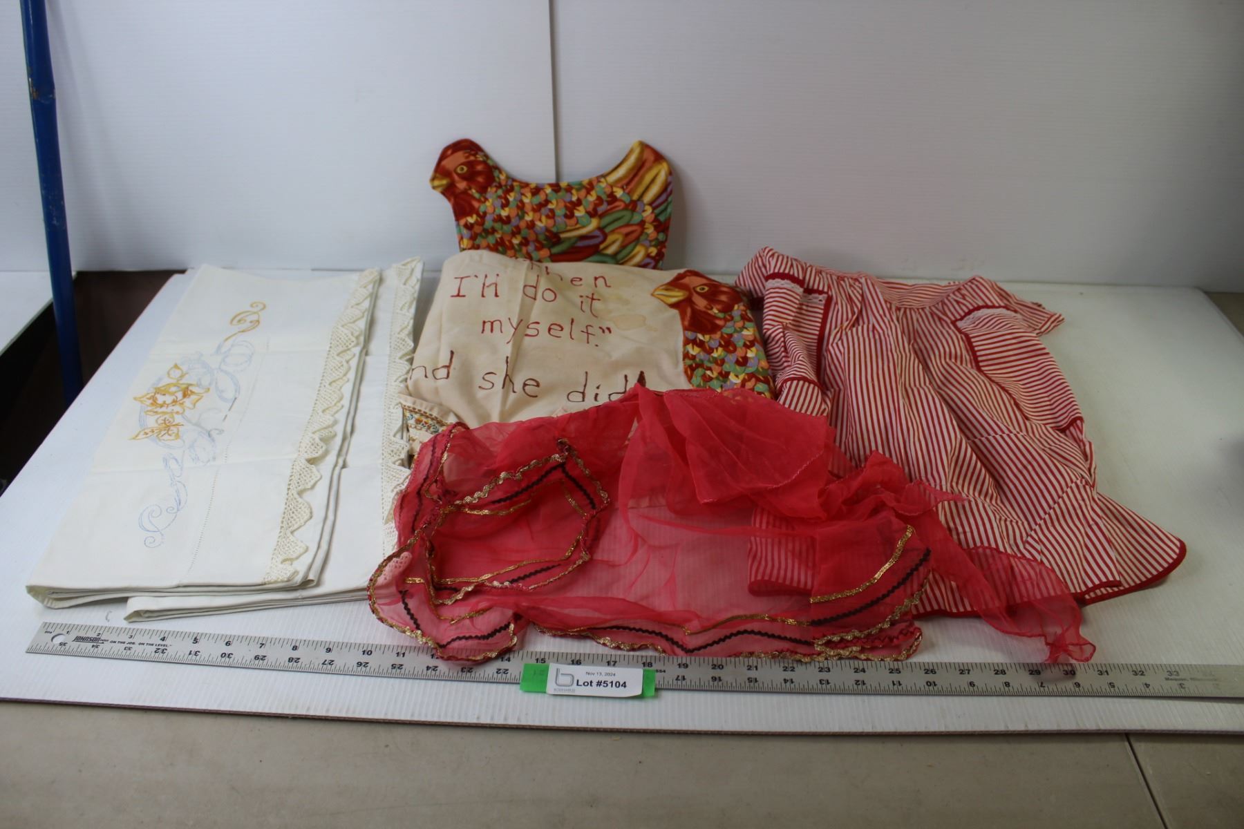 (3) Aprons - "Then I'll Do It Myself - And She Did!" (2) Pillow Cases, Pot Holder