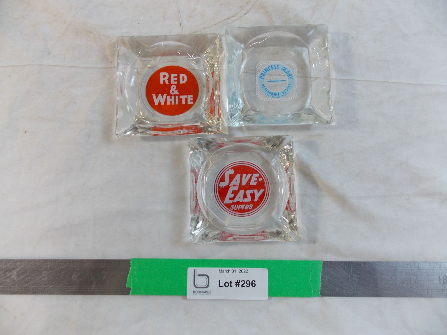 (3) Ashtrays - Red & White, Save Easy, Princess Mary Cruise Ship