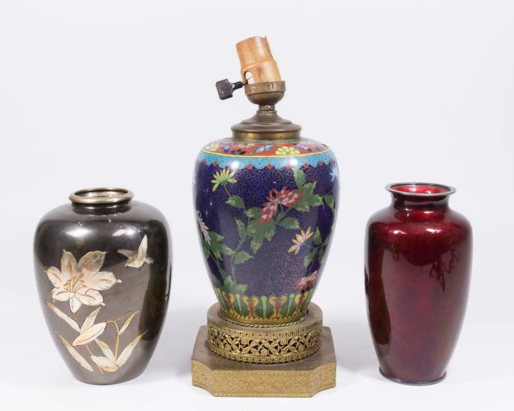 Including one cloisonné mounted as lamp. Entire piece approx. 11" H. (73, 67, 68)