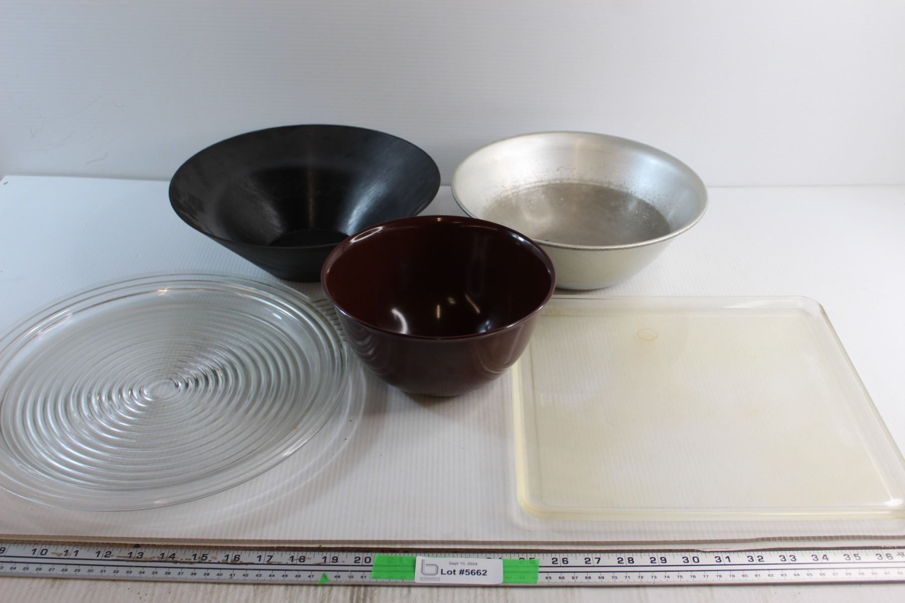 (3) Assorted Bowls 12'' and (2) Glass Trays 14''