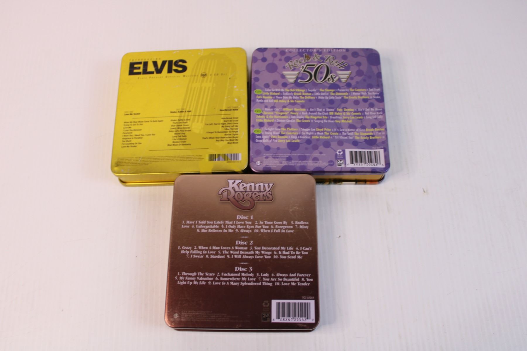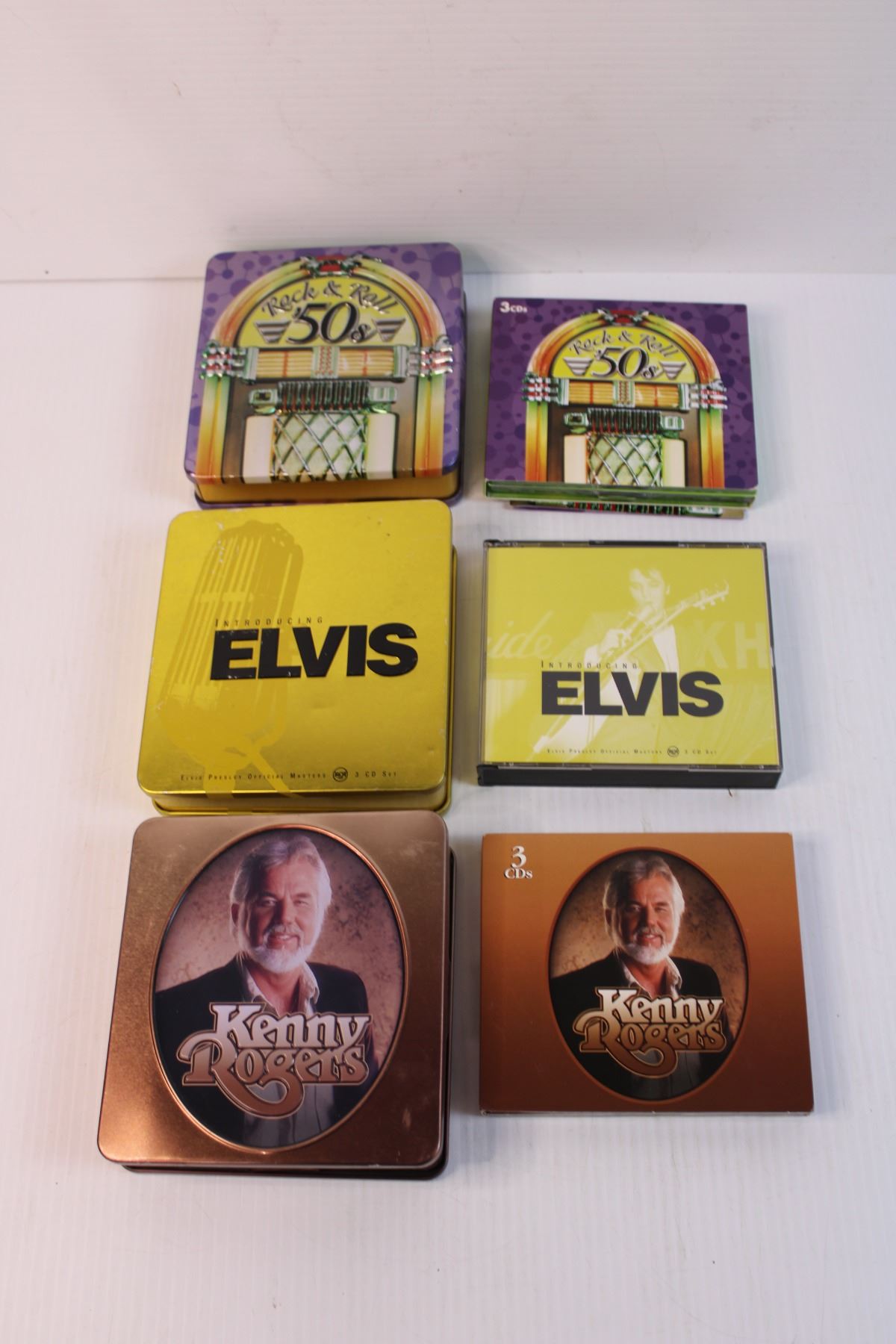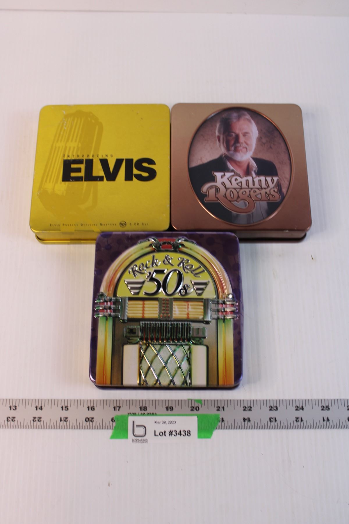 (3) Assorted CD Boxes - Elvis, Kenny Rogers, 1950s (Front Covers are Scuffed)