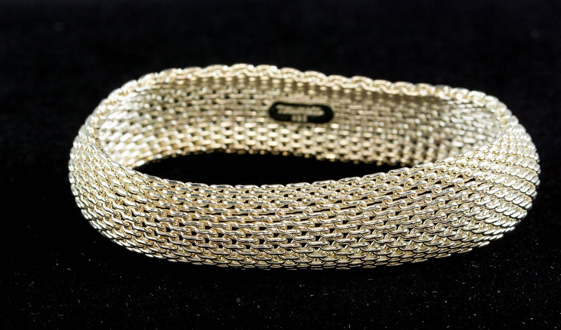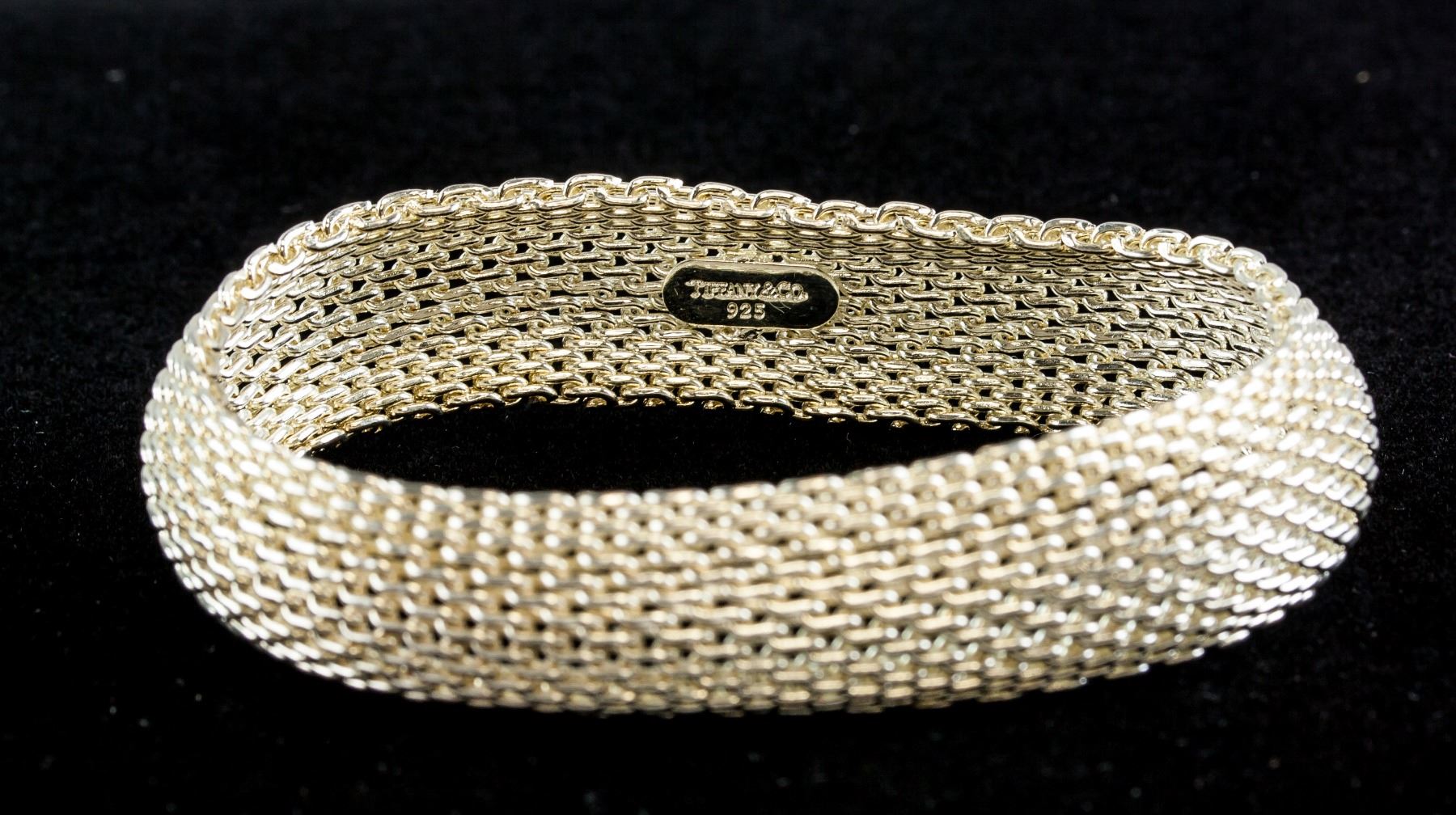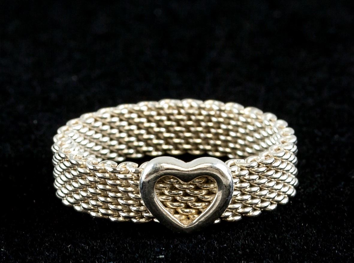 Three (3) assorted Tiffany & CO jewelry, of 1 chain mail bracelet, with 925 silver mark, 1 chain mail ring, and 1 tube form ring, Total weight: 47.65 g, Bracelet diameter: 6.5 cm. Ring size: 6 and 9.5