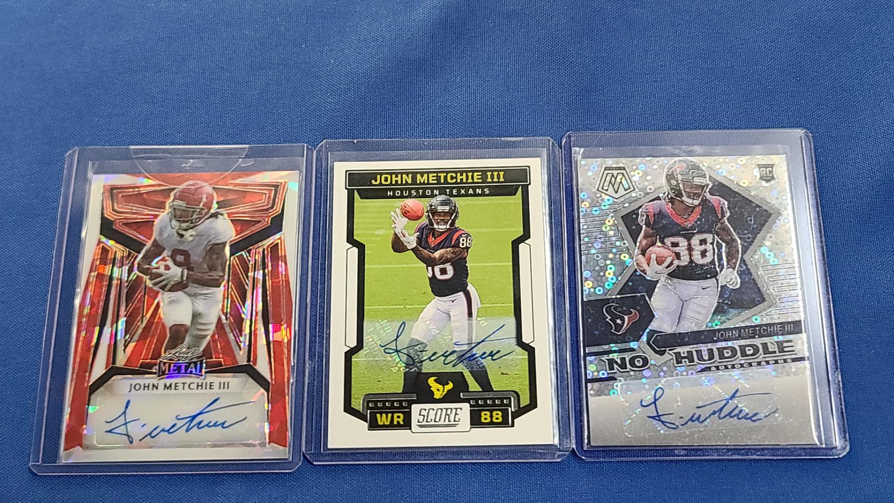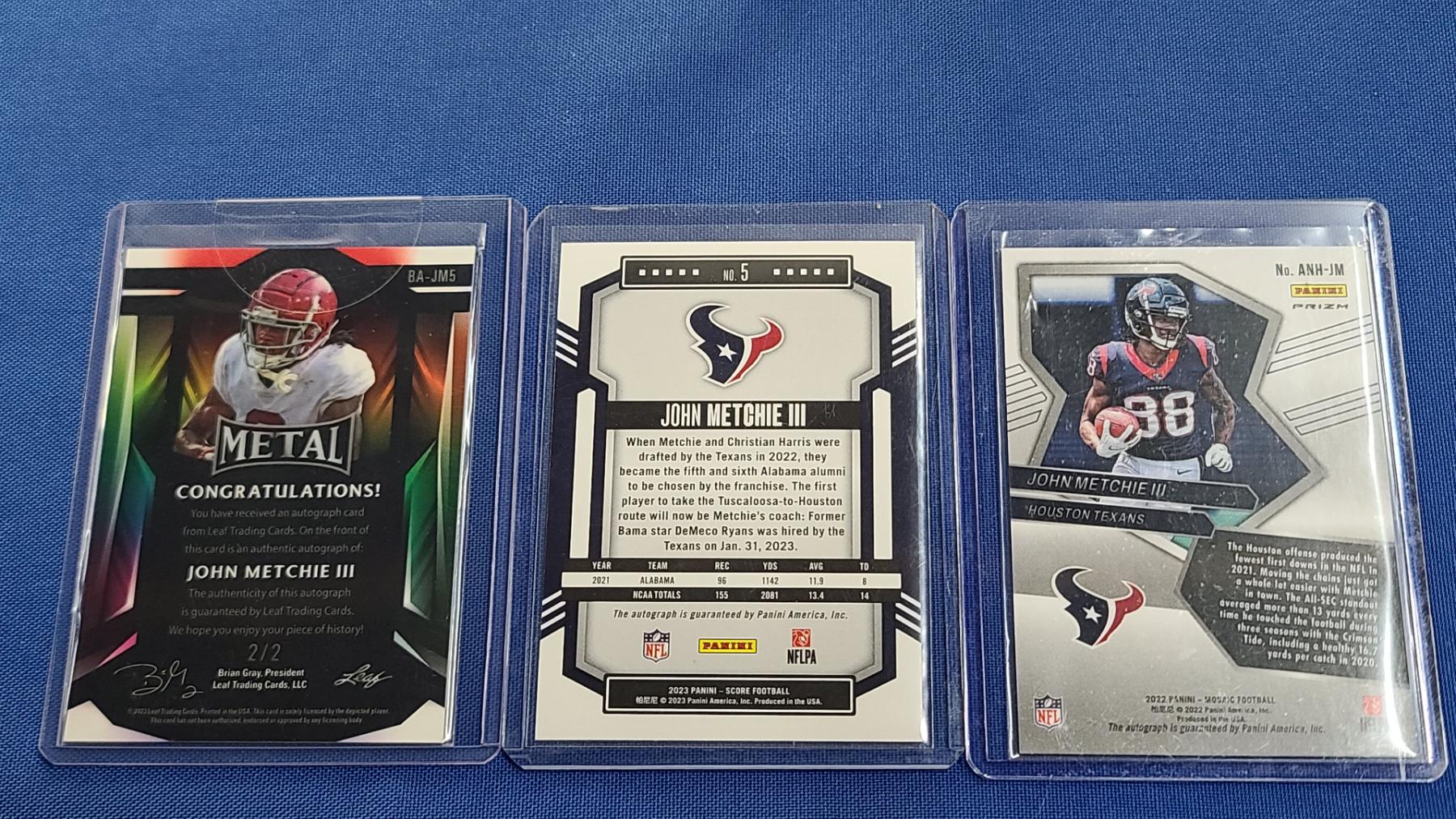 (3) Autographed 2022-2023 Panini & Leaf John Metchie III Football Trading Cards