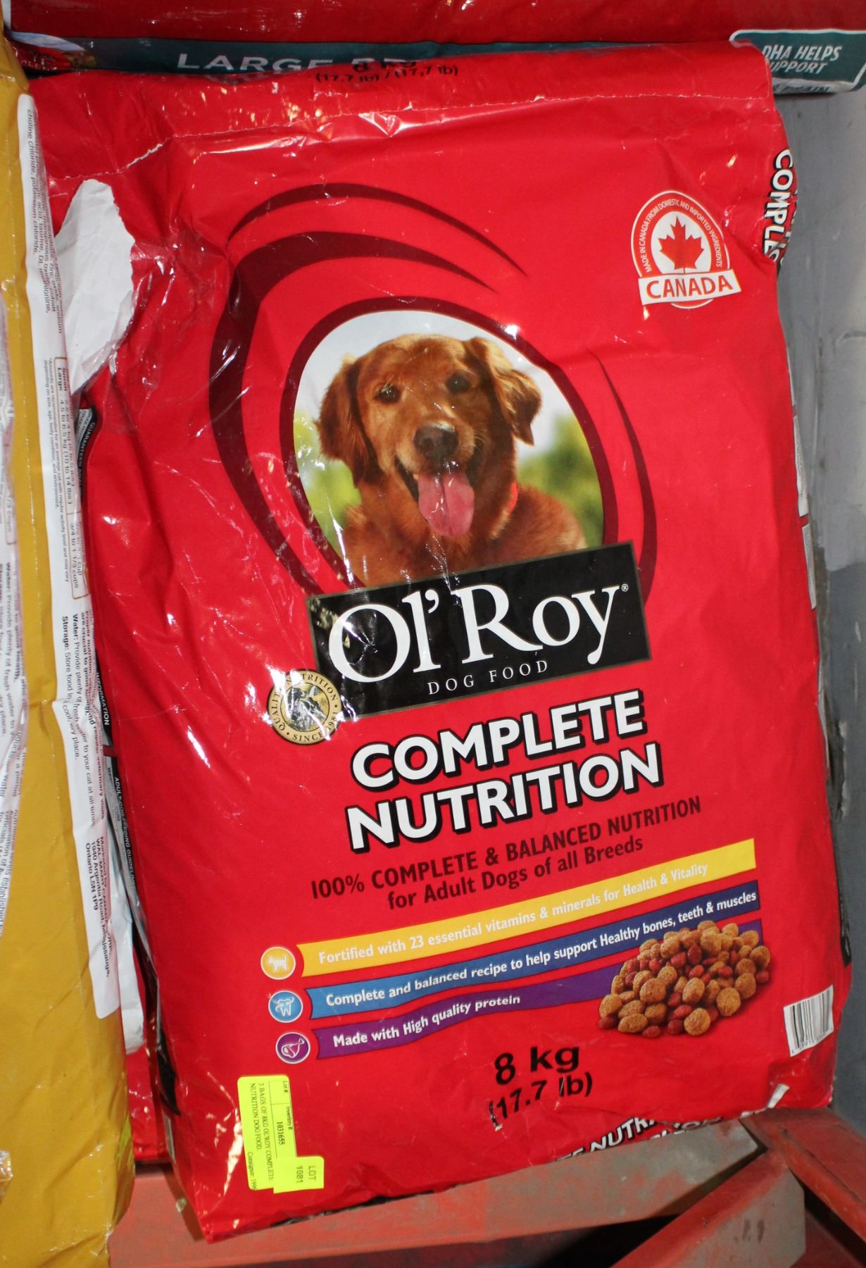 3 BAGS OF 8KG OL'ROY COMPLETE NUTRITION DOG FOOD.