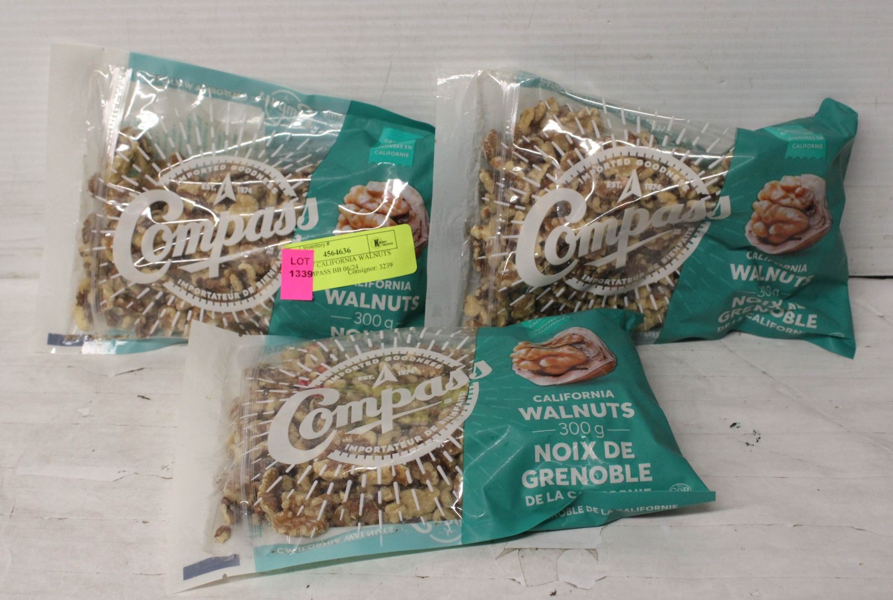 3 BAGS OF CALIFORNIA WALNUTS 300G COMPASS BB 06/24