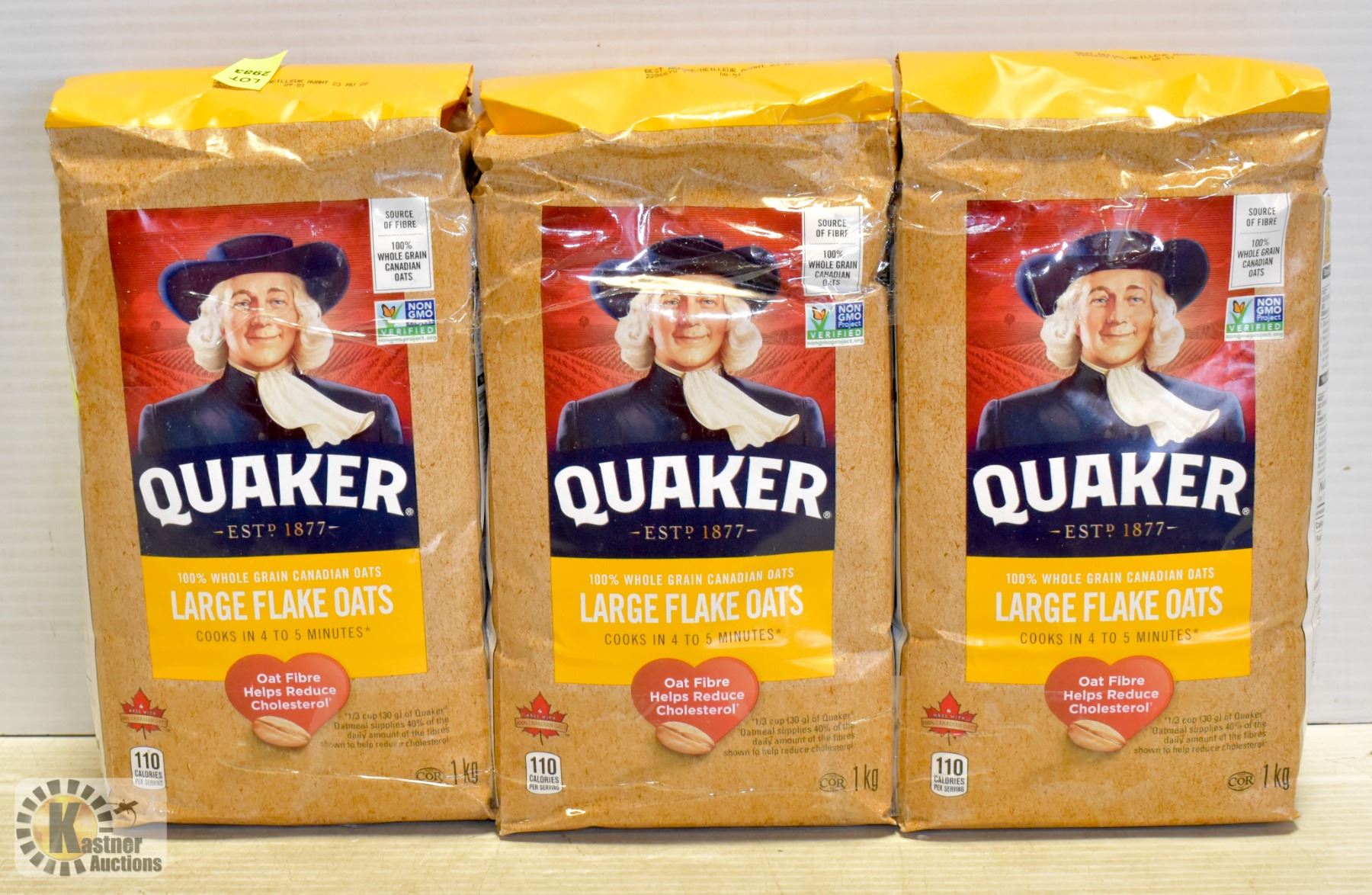 3 BAGS OF QUAKER LARGE FLAKE OATS 1KG BAGS