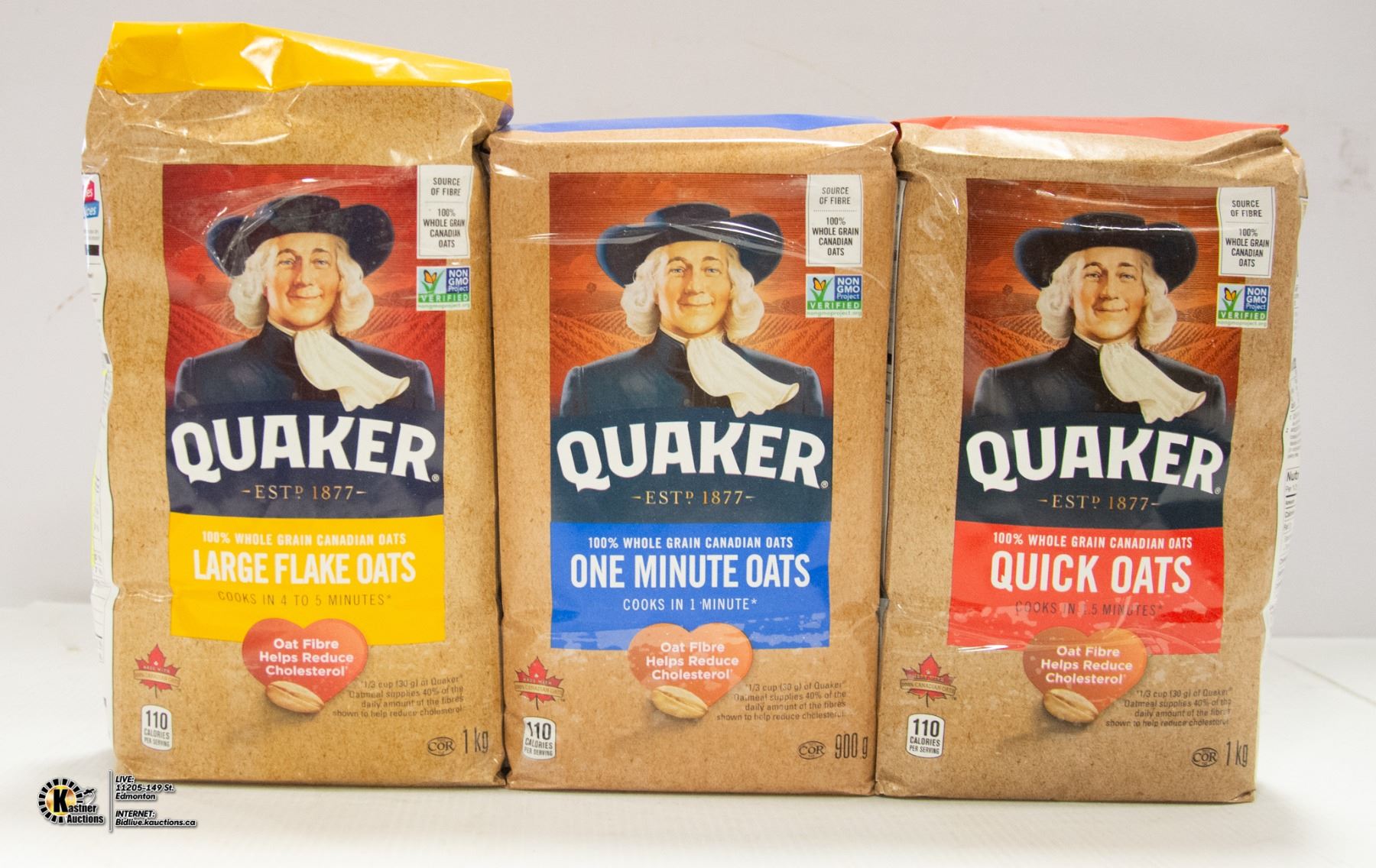 3 BAGS OF QUAKER OATS LARGE FLAKE OATS, ONE MINUTE