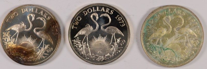 ( 3 ) BAHAMAS $2.00 SILVER COINS, 2.7oz. ASW