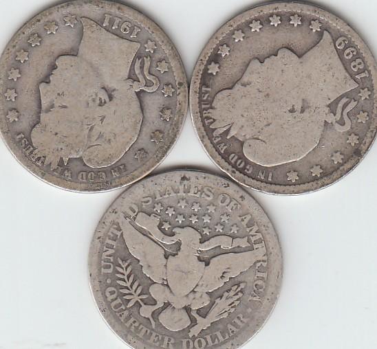 3 BARBER SILVER QUARTERS MIX DATES