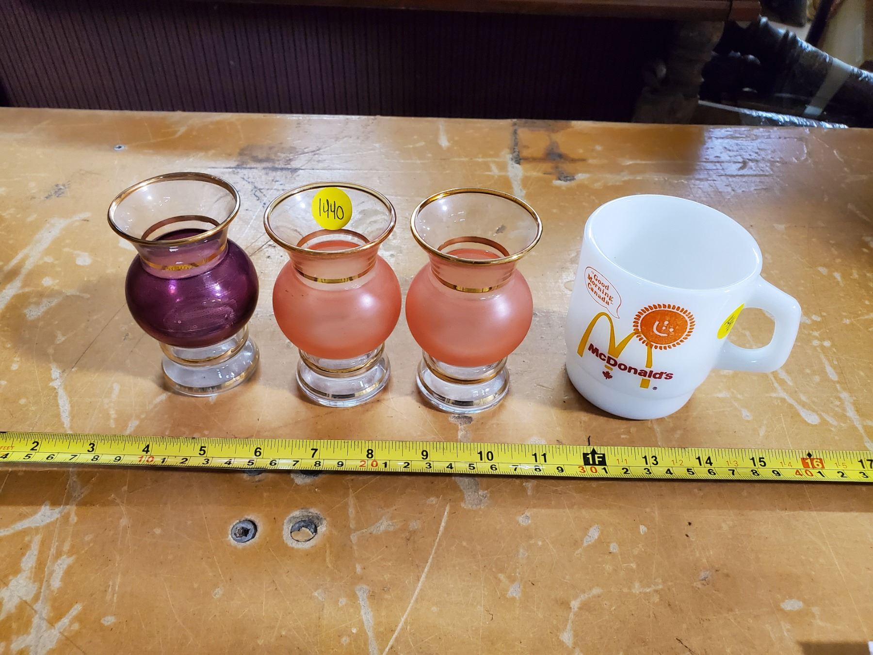 3 BARTLETT COLLINS VASES & FIRE-KING MCDONALDS MUG