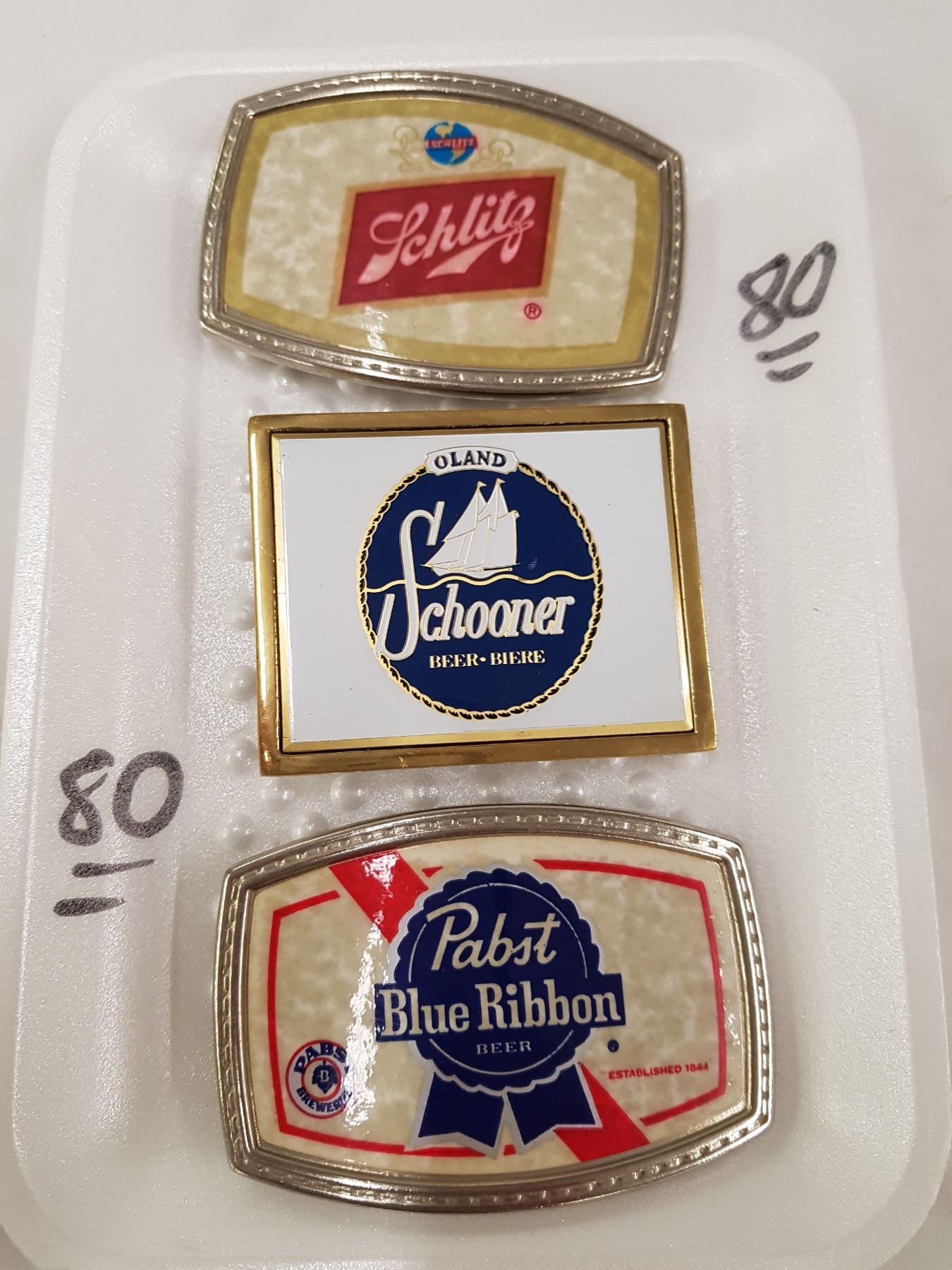 3 BEER ADVERTISING BELT BUCKLES