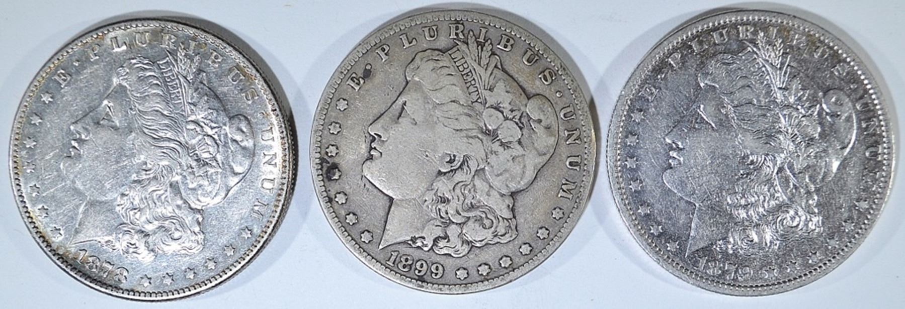 1878-S CH BU, 1879-O AU cleaned & 1899-S FINE ESTIMATE $150 - $170.