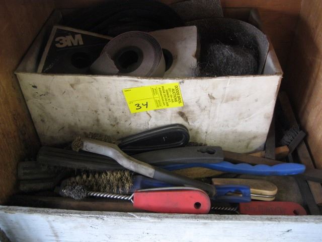3 BINS MISC EMERY CLOTH, WIRE BRUSHES ETC.