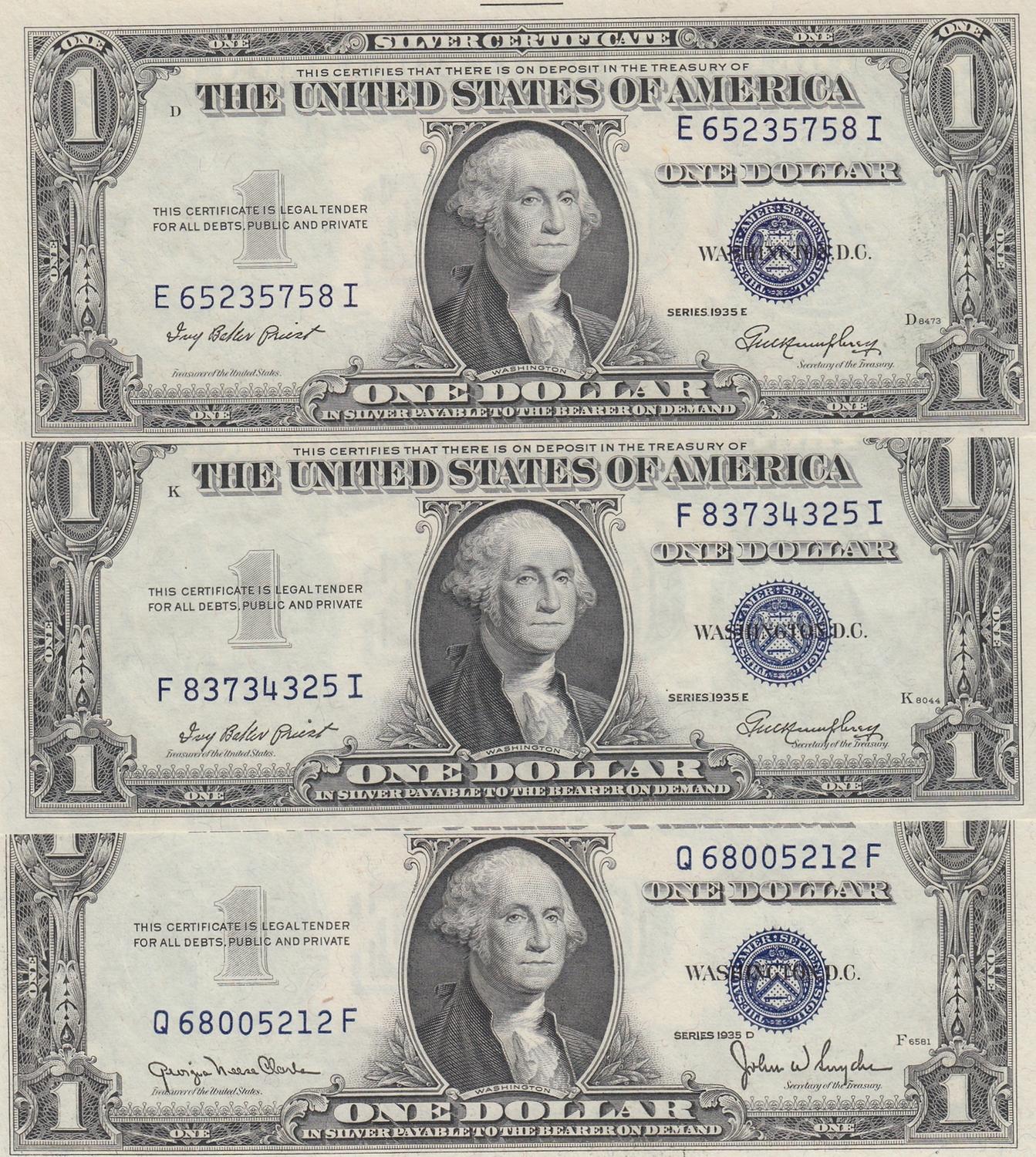 3 BOLD CRISP EMBOSSED HIGH GRADE $1 1935 SERIES SC