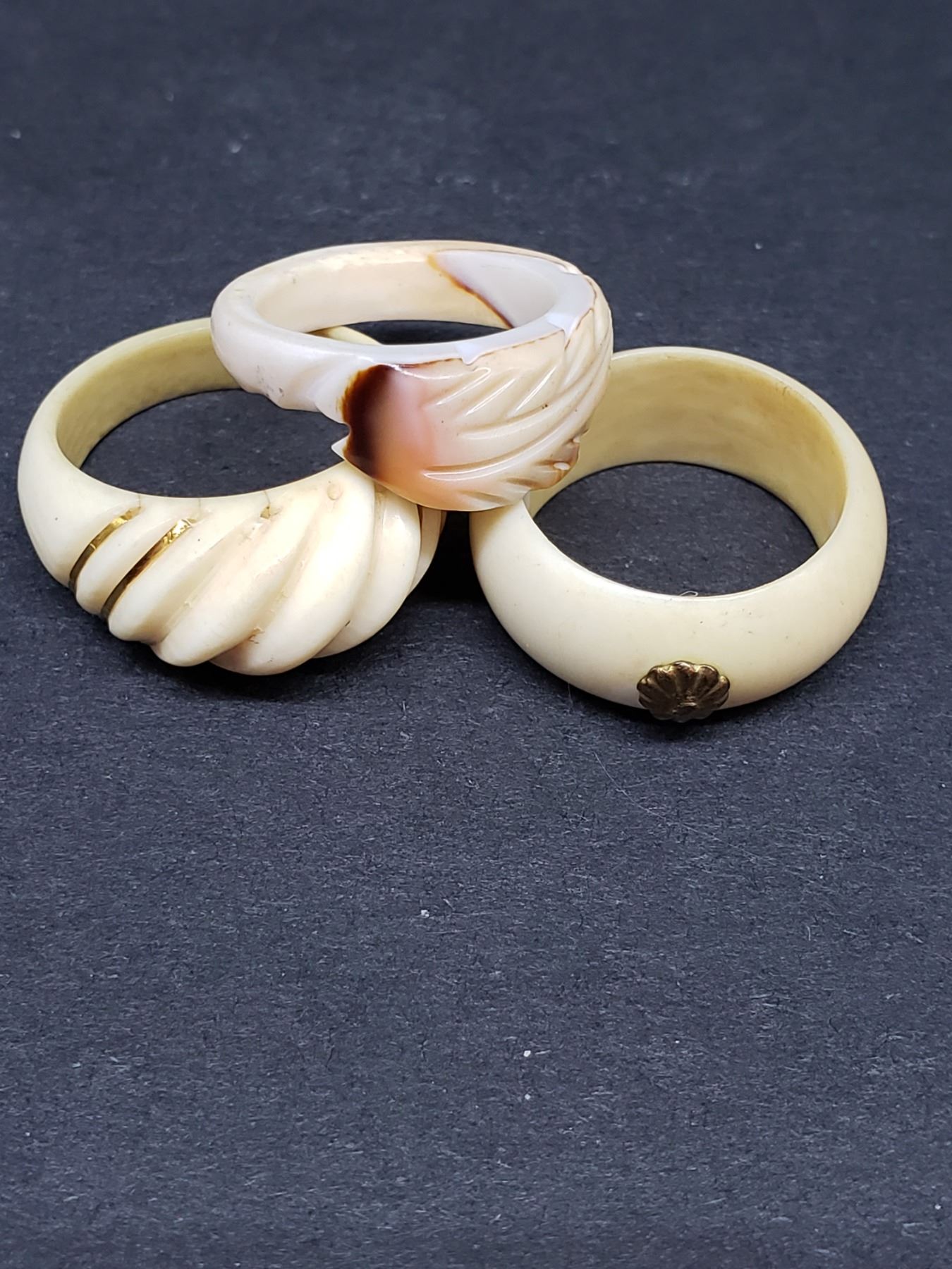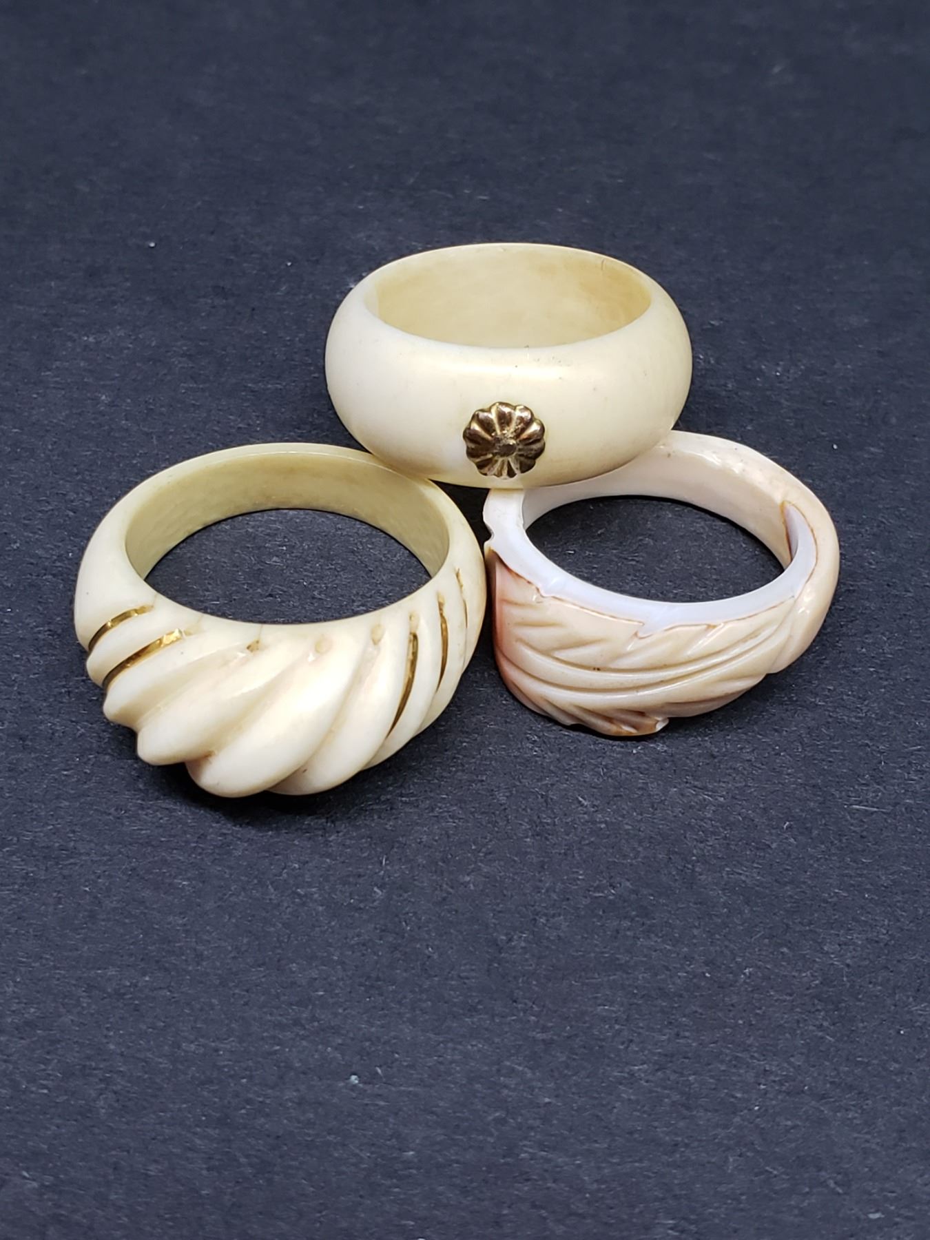 3 Bone Rings Sizes 8, 5 1/2, 5 1/2 All items Located in in Hollywood Florida Warehouse For Shipping Call today for quote they have item numbers and Pak Mail is available for all your custom packaging and shipping needs. We can package, palletize, crate, insure and ship to any Domestic or International location. All packaging and shipping fees must be paid in full before shipment is released. On international shipments, consignee is responsible for all Duties, Taxes, Customs Clearance or any destination fees that apply. Please visit our website @ www.pakmail.com/us770 for contact information or to get a quote. (Let us know you are a winning bidder from the Puckett auction so we can correctly arrange pick up for your item