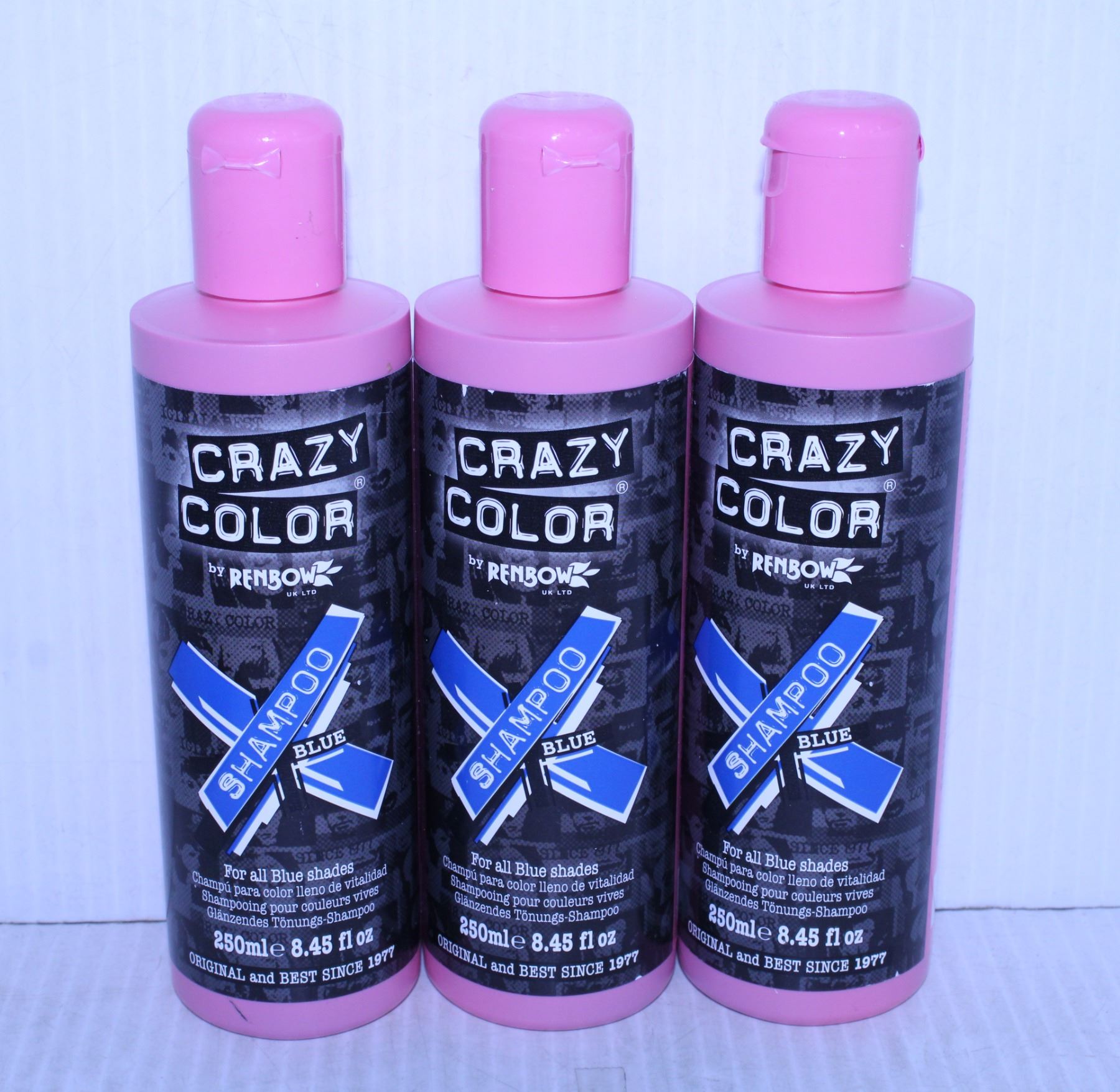 3 BOTTLES OF 250 mL BLUE CRAZY COLOR VIBRANT COLOR SHAMPOO SEMI PERMANENT HAIR COLOR. SALT AND SULFATE FREE **ALL ITEMS MUST BE REMOVED BY 5PM MONDAY, OCTOBER 24, 2022. ALL REMAINING ITEMS WILL BE SUBJECT TO A $6.00 PER DAY STORAGE CHARGE. ANY ITEMS REMAINING AFTER MONDAY, NOVEMBER 14, 2022 WILL BE CONSIDERED FORFEITED. NO REFUNDS WILL BE ISSUED FOR FORFEITED ITEMS. TO SCHEDULE A PICK UP APPOINTMENT CLICK HERE