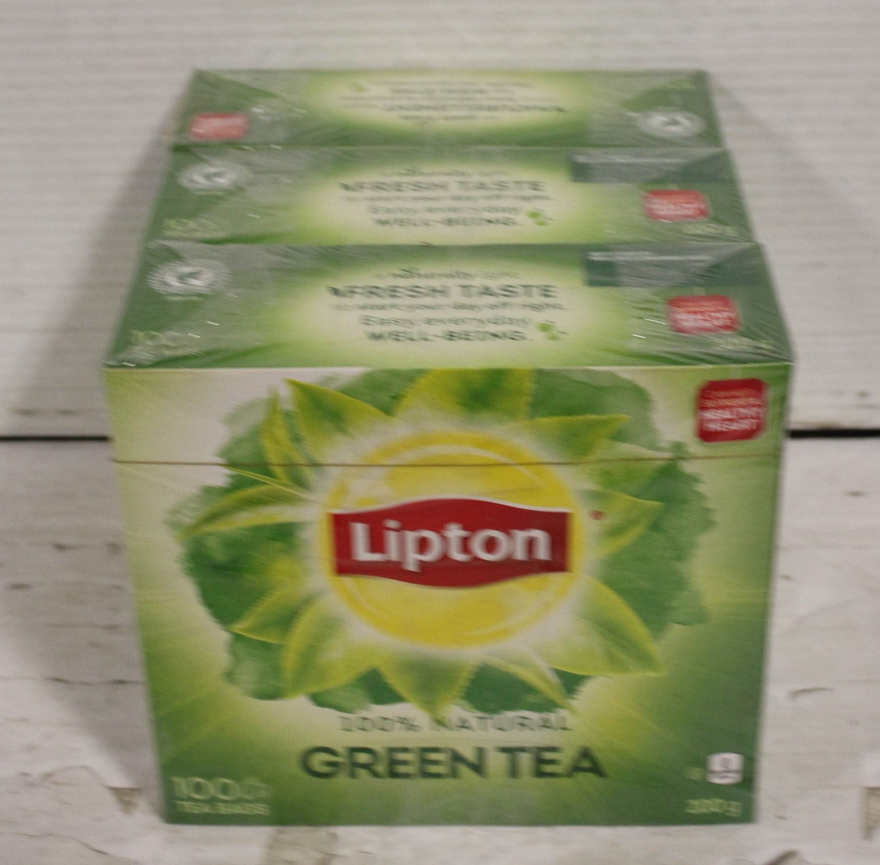 3 BOXES LIPTON GREEN TEA, 100 TEA BAGS EACH