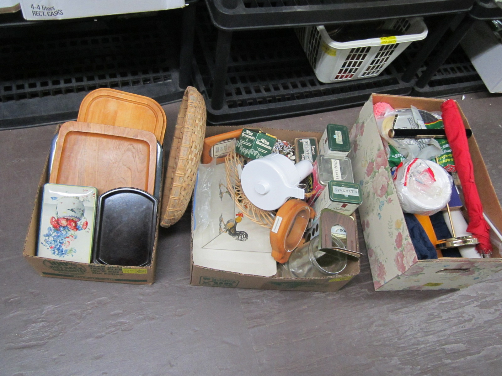3 BOXES OF MISC. CANDLES, TINS, TRAYS, ETC.