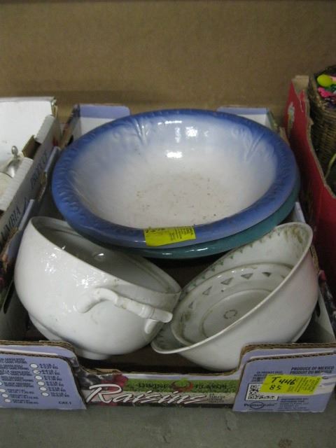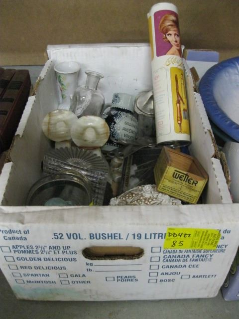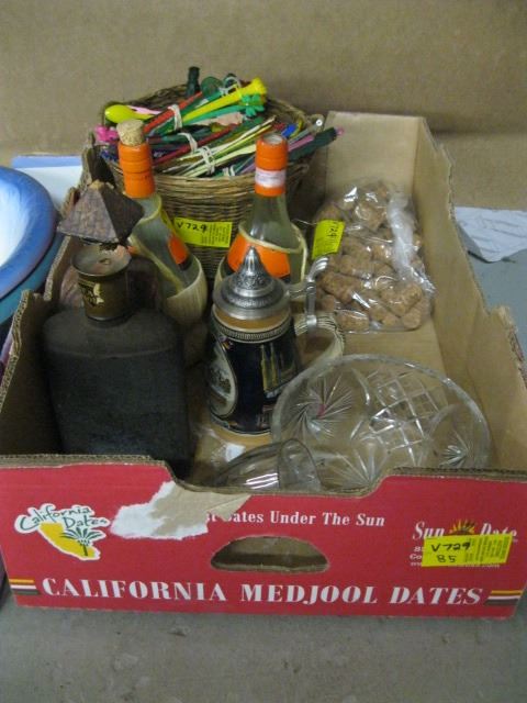 3 BOXES OF MISC. - CRYSTAL, STIR STIX, WASH BOWLS, ETC.