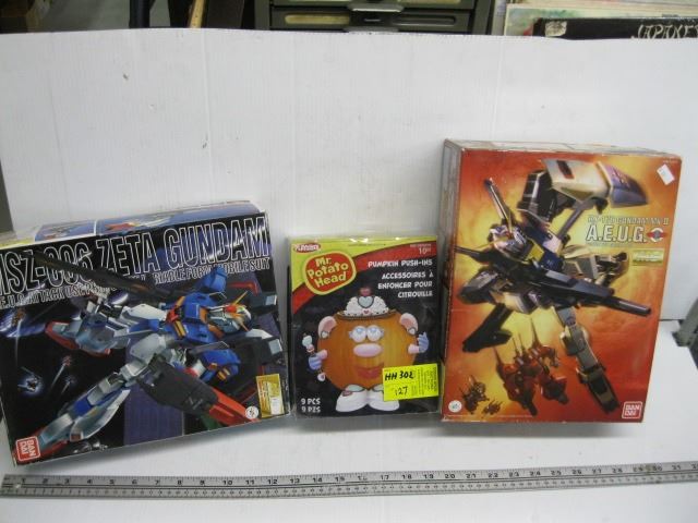3 BOXES OF MISC: FIGURINES, MR. POTATO HEAD & 2 MASTER GRADE TRANSFORMER FIGURINES