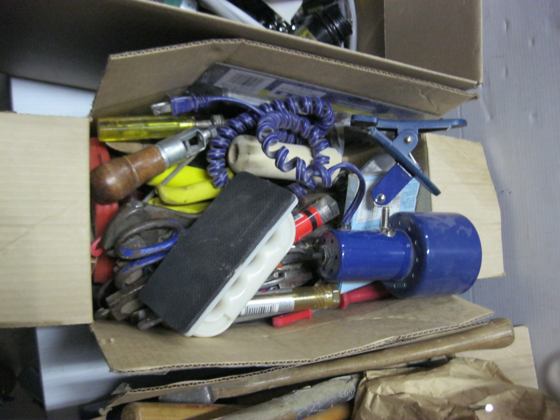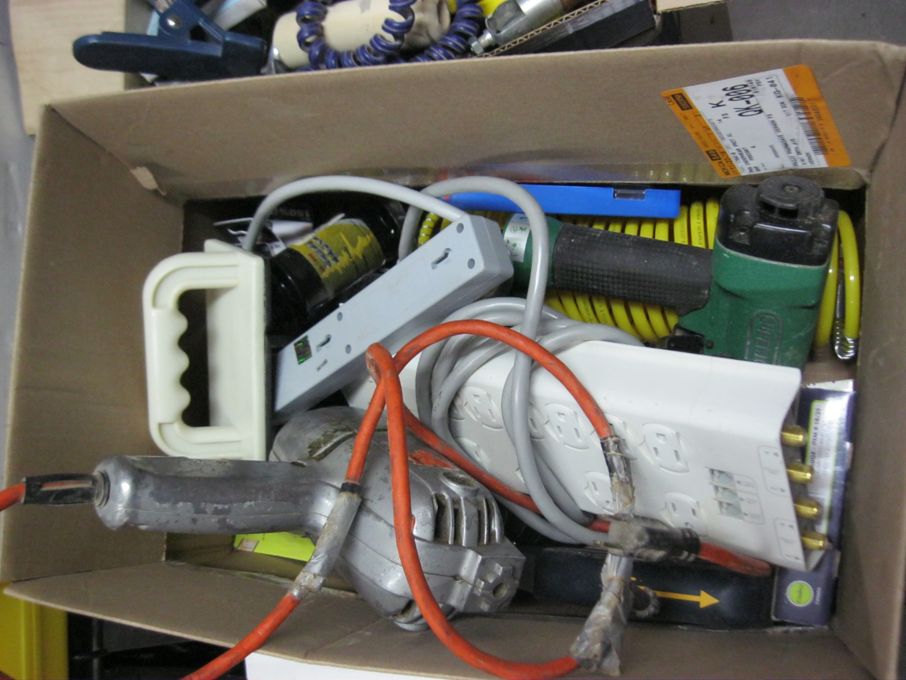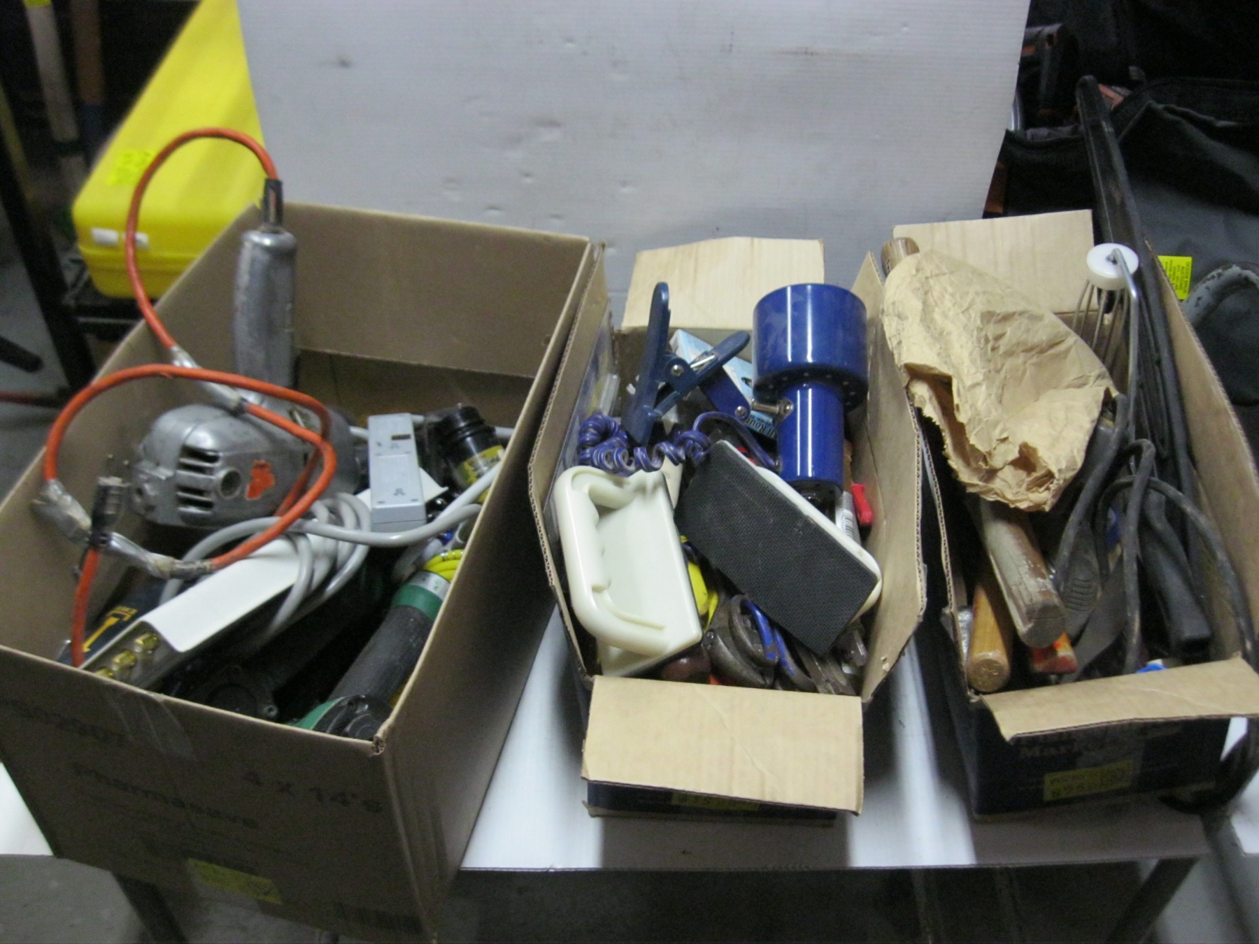 3 BOXES OF MISC. TOOLS - ELECTRIC DRILL, POWER BARS, ETC.