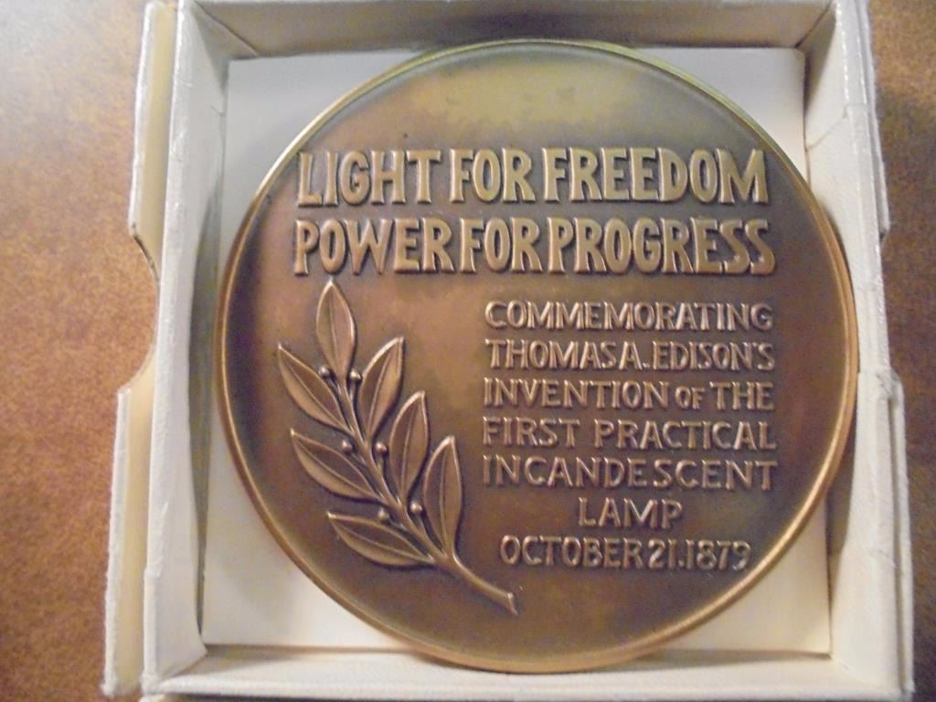 THE 75TH ANNIVERSARY OF EDISONS INCANDESCENT LAMP BY MEDALLIC ART COMPANY, ORIGINAL PACKAGING WITH A TYPICAL RETAIL OF $50.00+