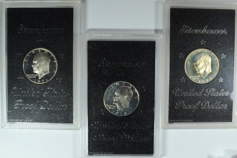 (3) BROWN IKE DOLLARS (71, 73, 74) 40% SILVER MISSING PACKAGING