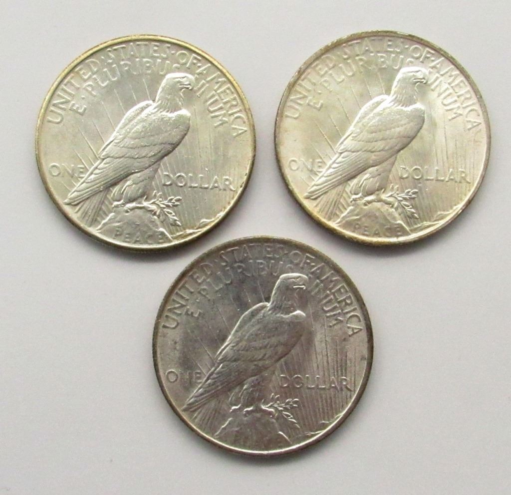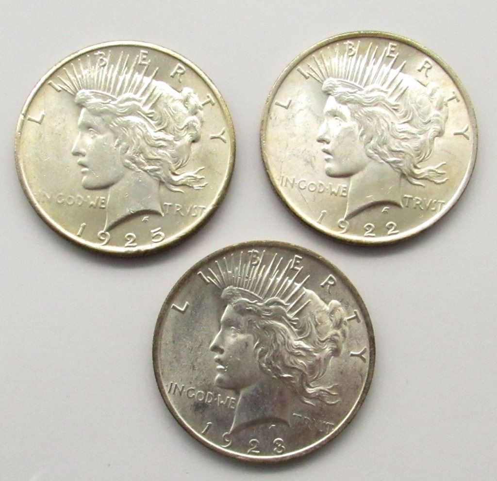 3-BU PEACE DOLLARS; 1922, '23, '25