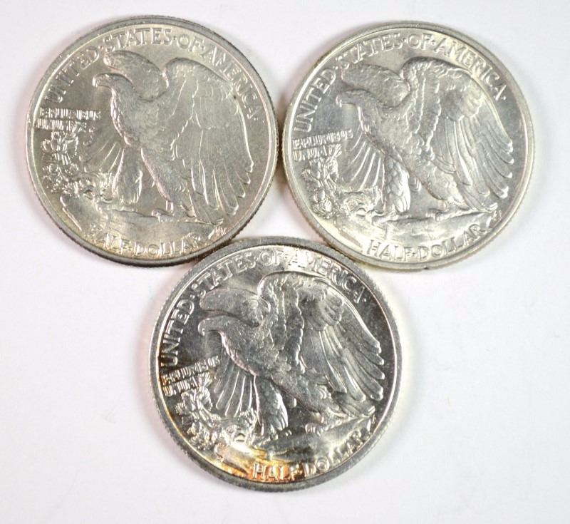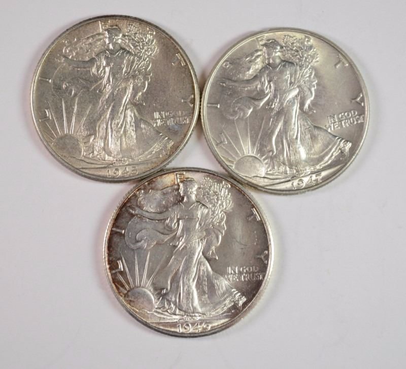 3 BU WALKING LIBERTY HALVES 1945, 47, 46-S