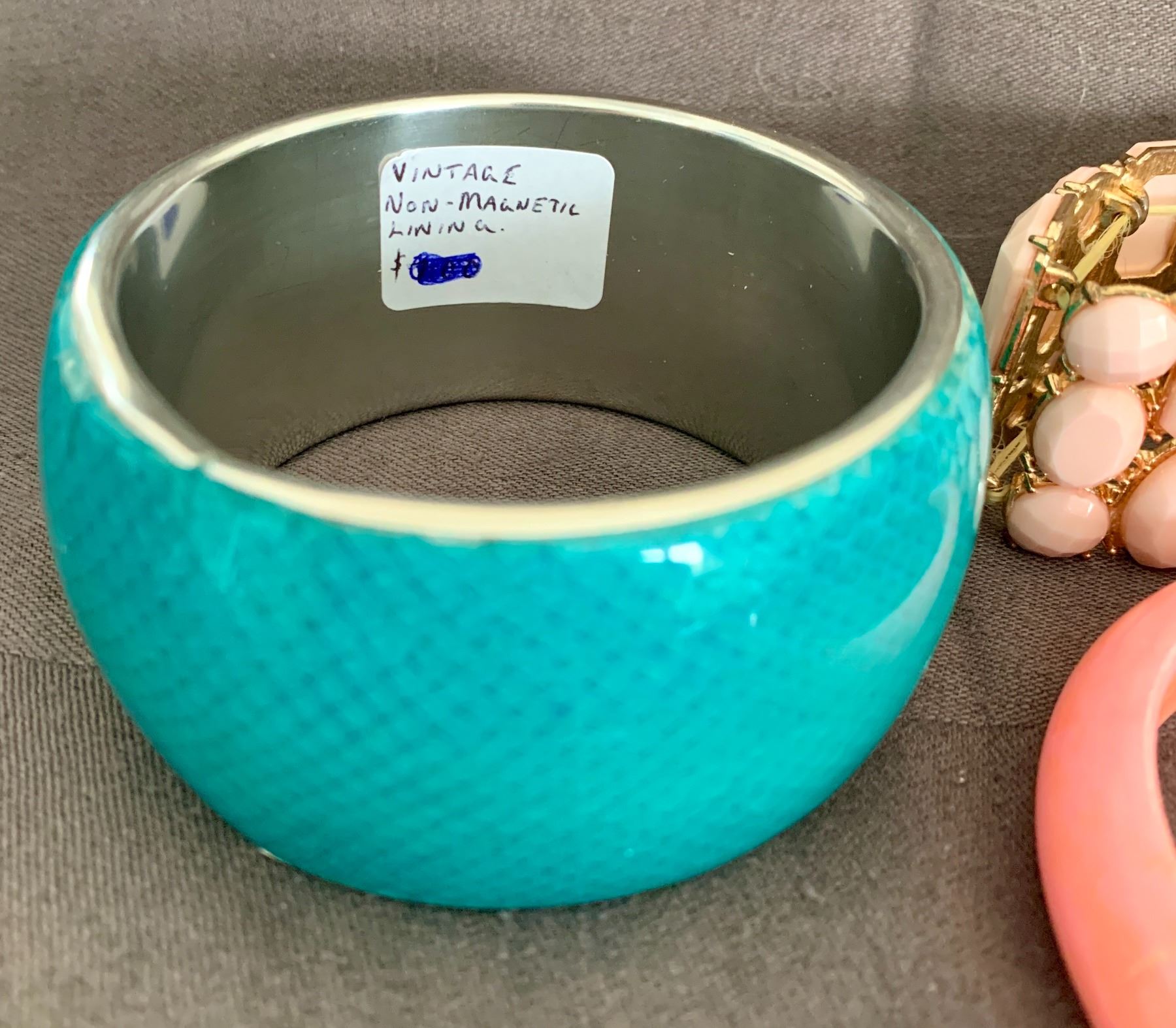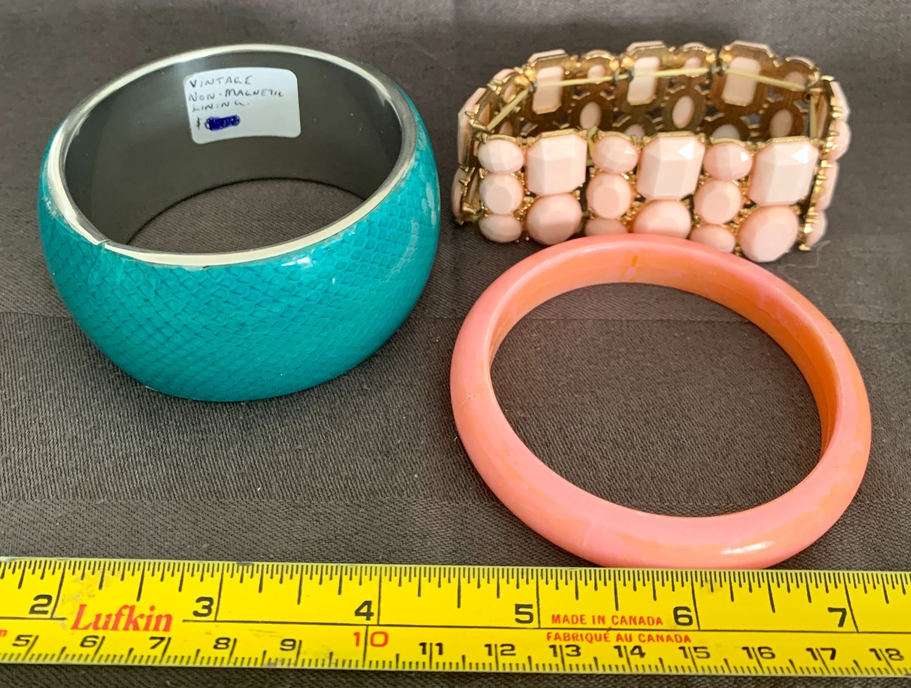 3 Bangles Bracelets - Green One Inside is Non-Magnetic Metal