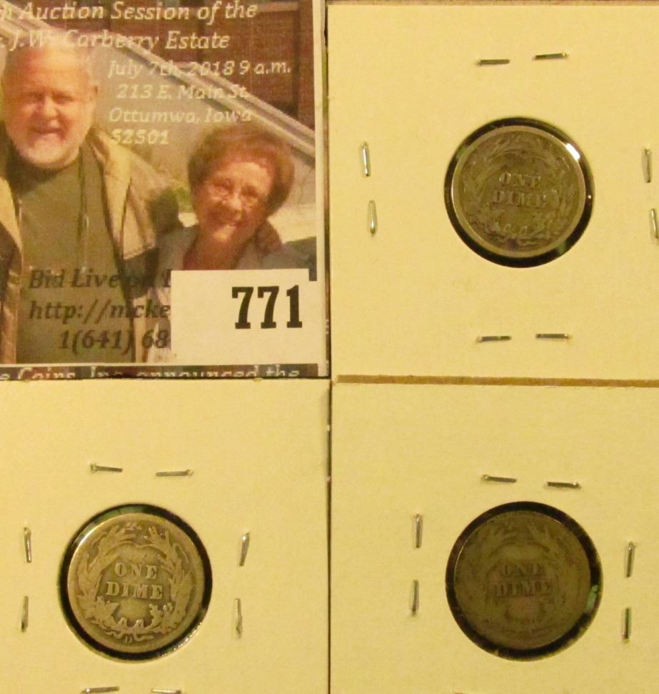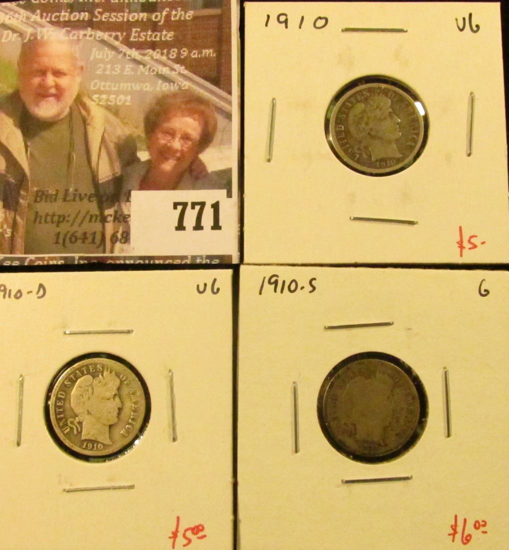 (3) Barber Dimes, 1910 VG, 1910-D VG, 1910-S G, group value $ 16