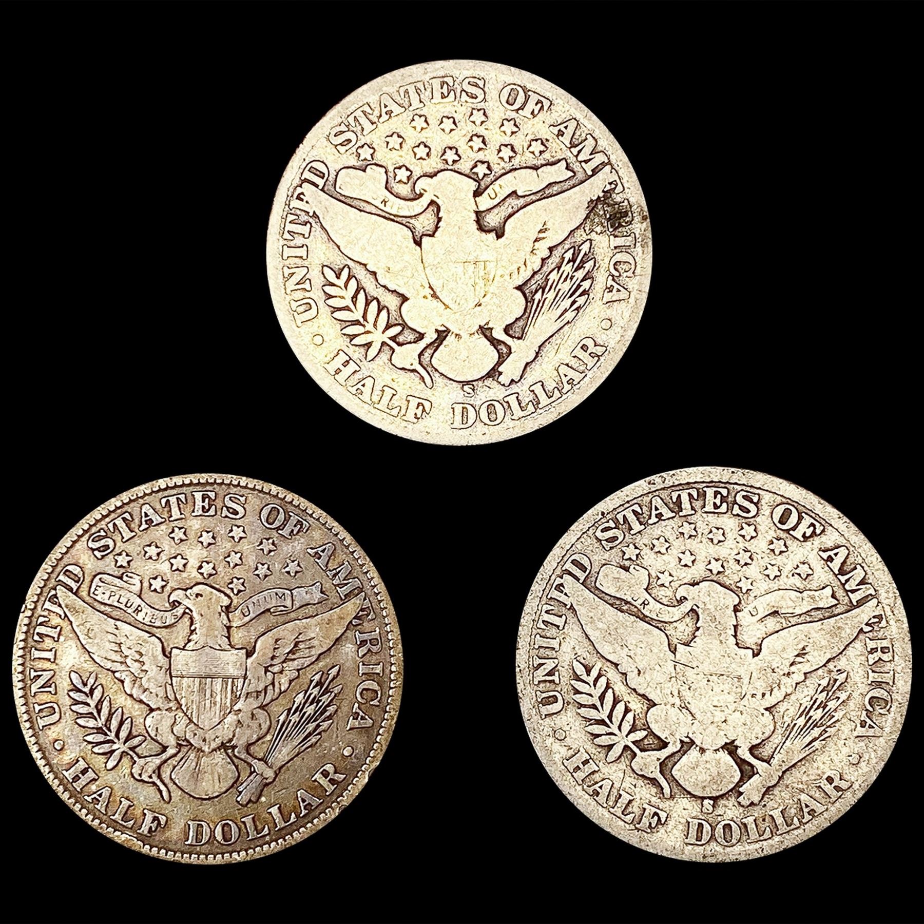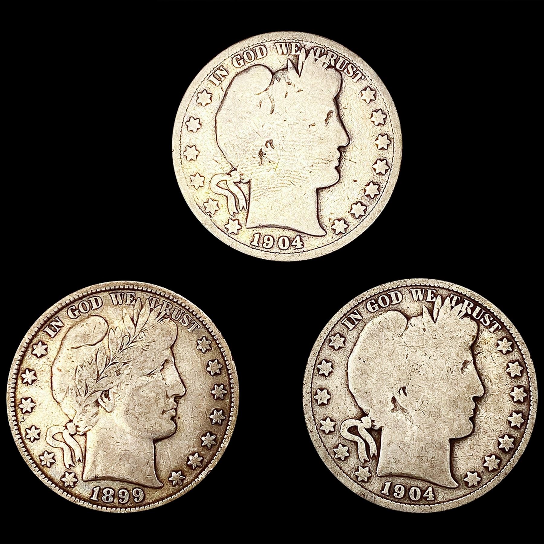 (3) Barber Half Dollars (1899, (2) 1904-S) NICELY