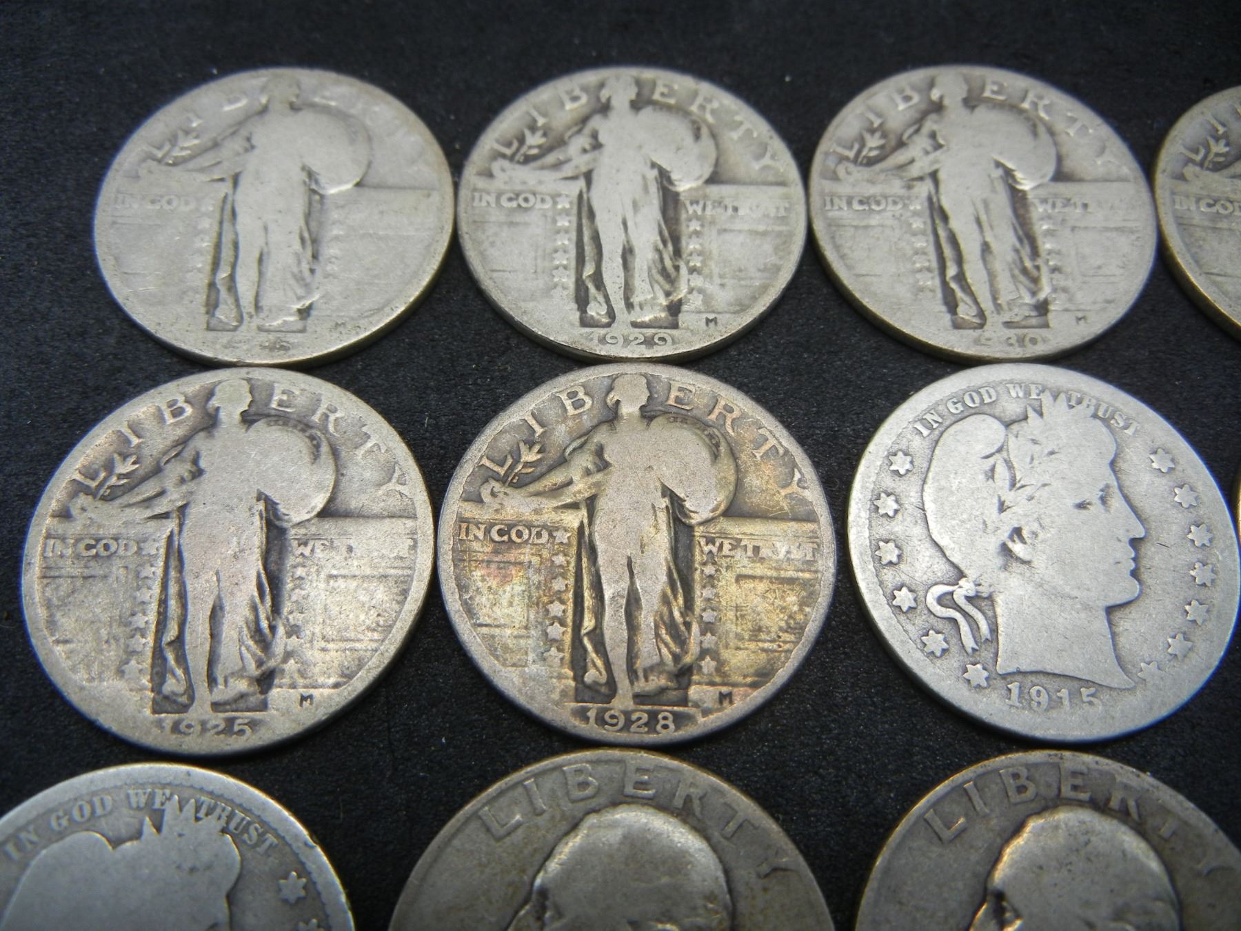 (3) Barber Quarters (6) Standing Liberty Quarters (2) Silver Wash. Quarters (4) Wheat Cents