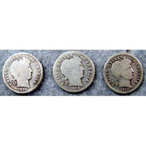 3 Barber Silver Dimes