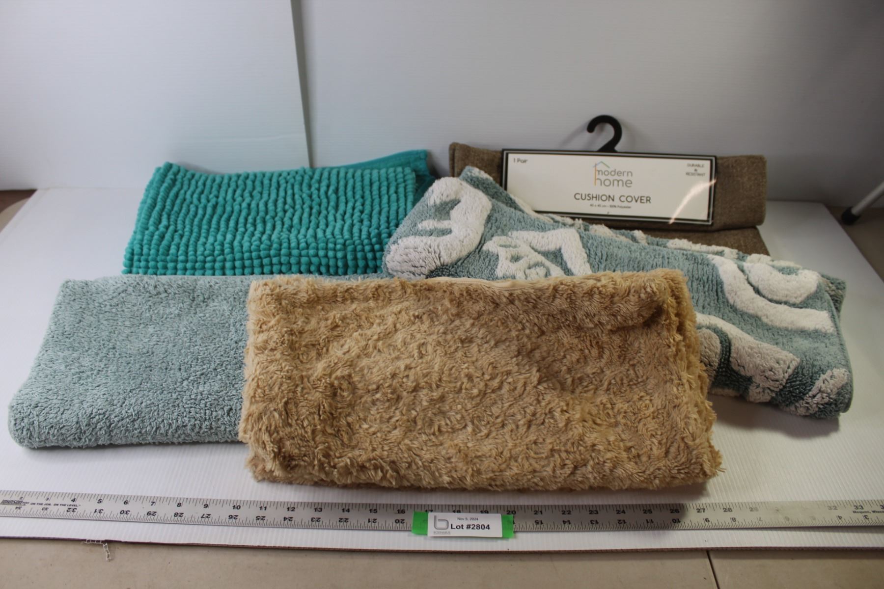 (3) Bath Mats, Set Pillow Shams, Modern Home Cushion Covers Set (Unused)