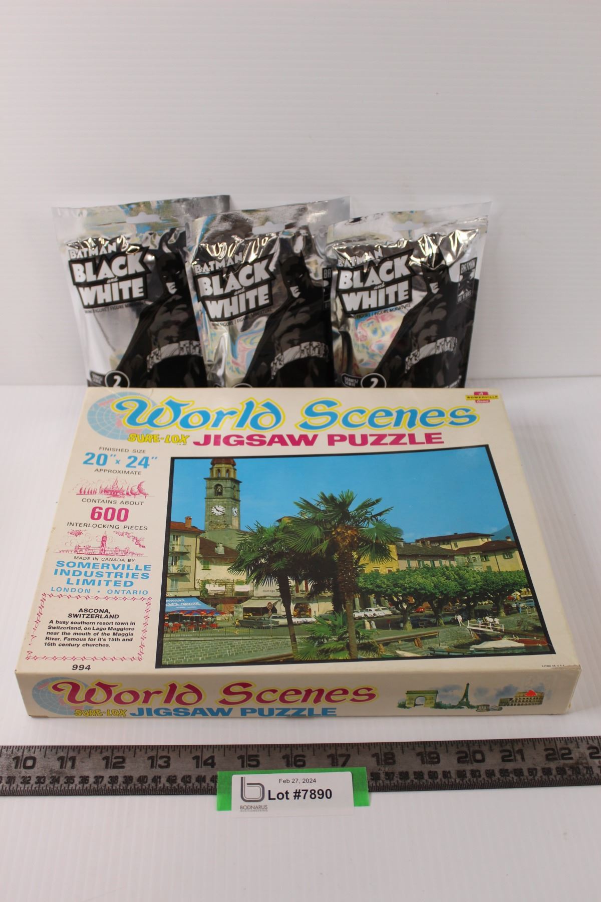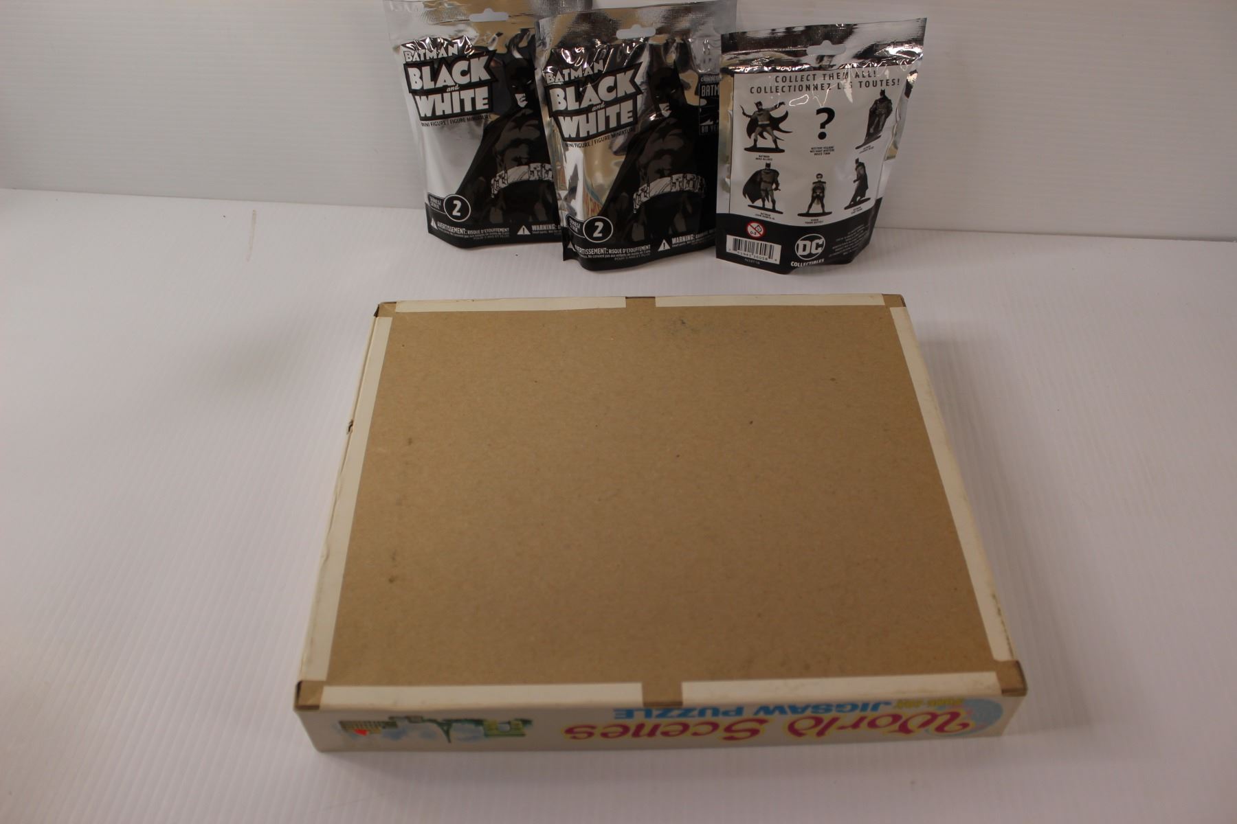 (3) Batman Mini Figures, World Scenes Switzerland Unopened Puzzle (600 Pieces)