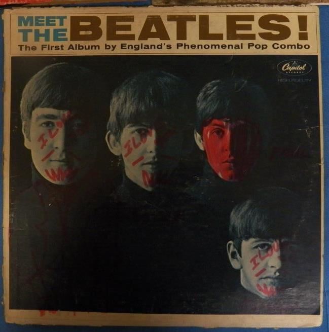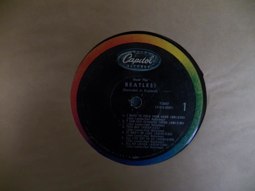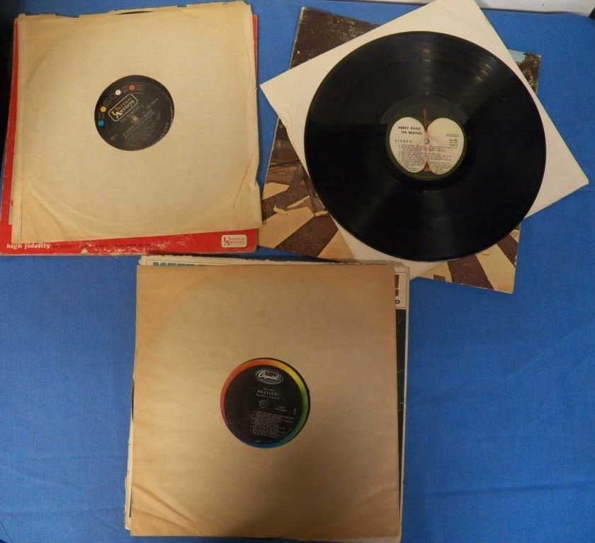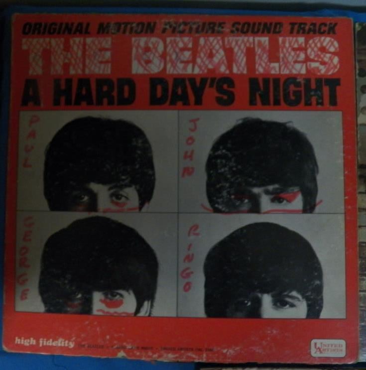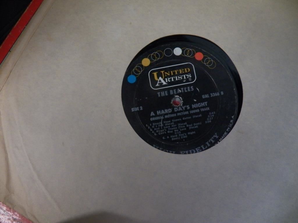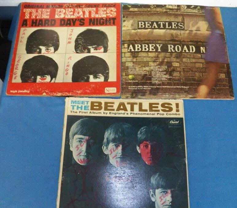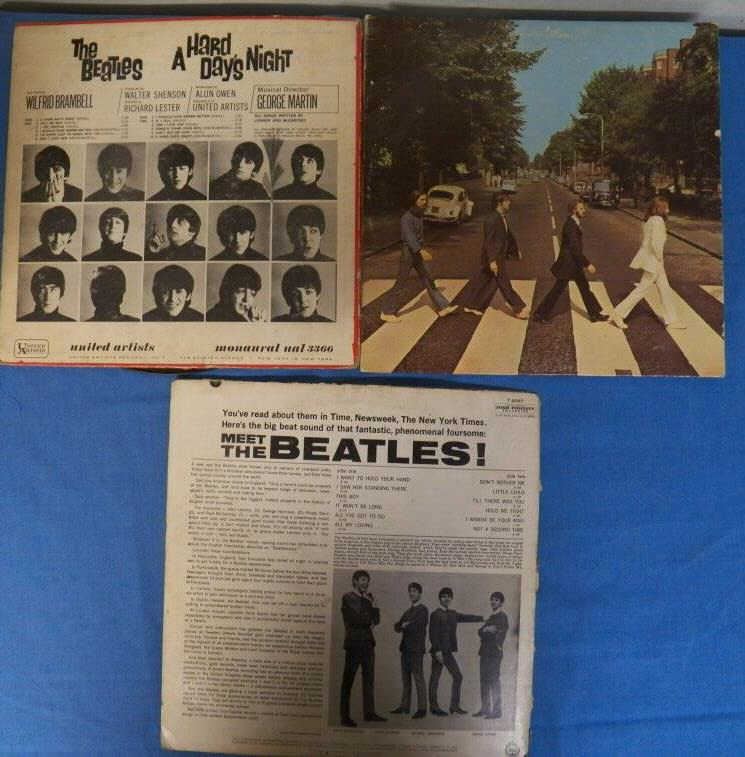 Meet the Beatles by Capitol Records, A Hard Day's Night by United Artists and Beatles Abbu Road by Apple Records. All 3 albums are in used condition and two of them have been wrote on in red ink.