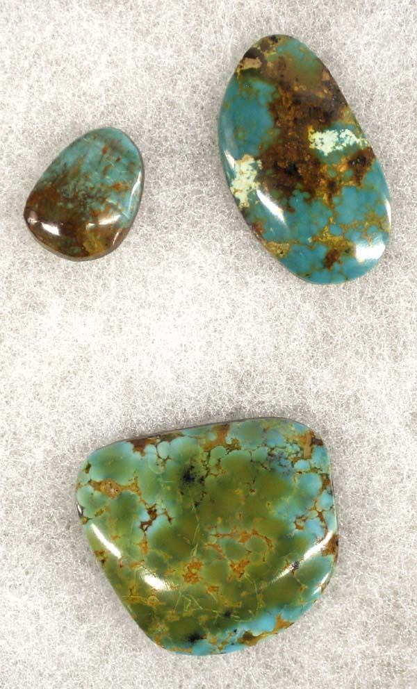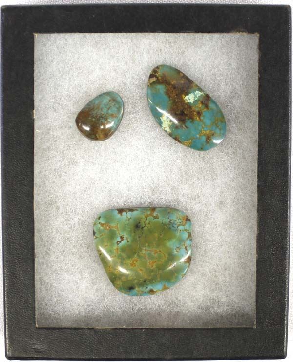3 Beautiful Royston Turquoise Cabochons, largest measures 1.5'' x 1.5'', 92.25g in total wt.