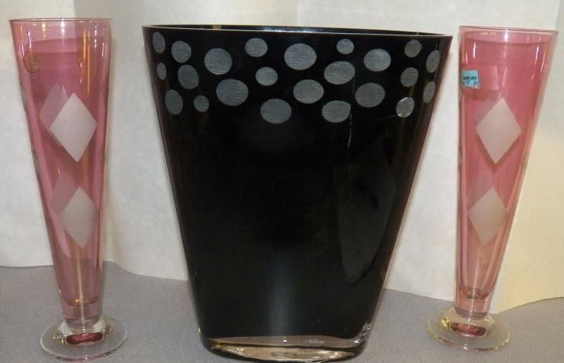 Heavy Amyethus Glass Vase made in Poland with 2- Cranberry Vases made in Italy