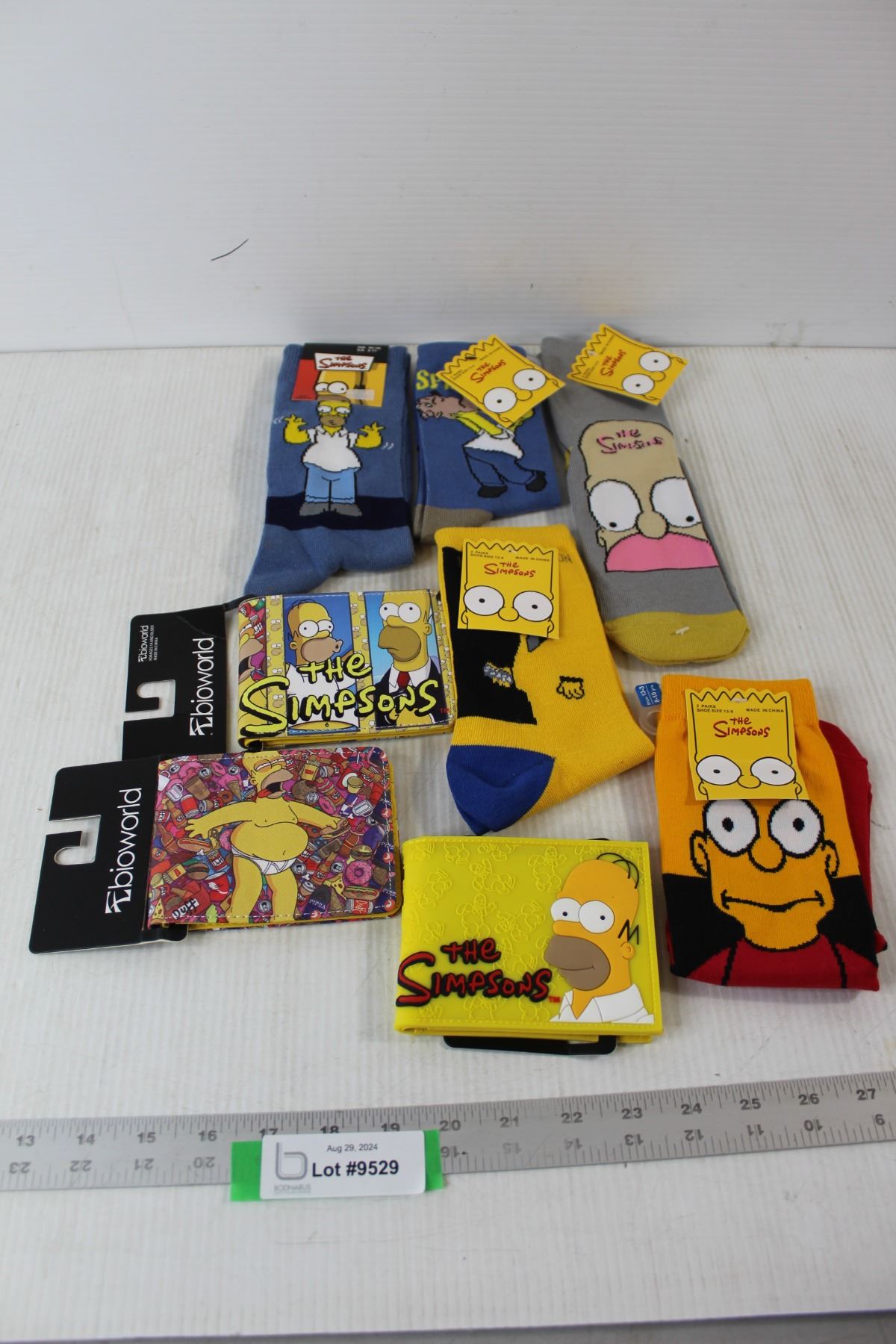 (3) Bioworld Simpsons Decorated Wallets, (5) Pairs of Simpsons Decorated Socks