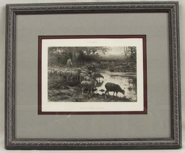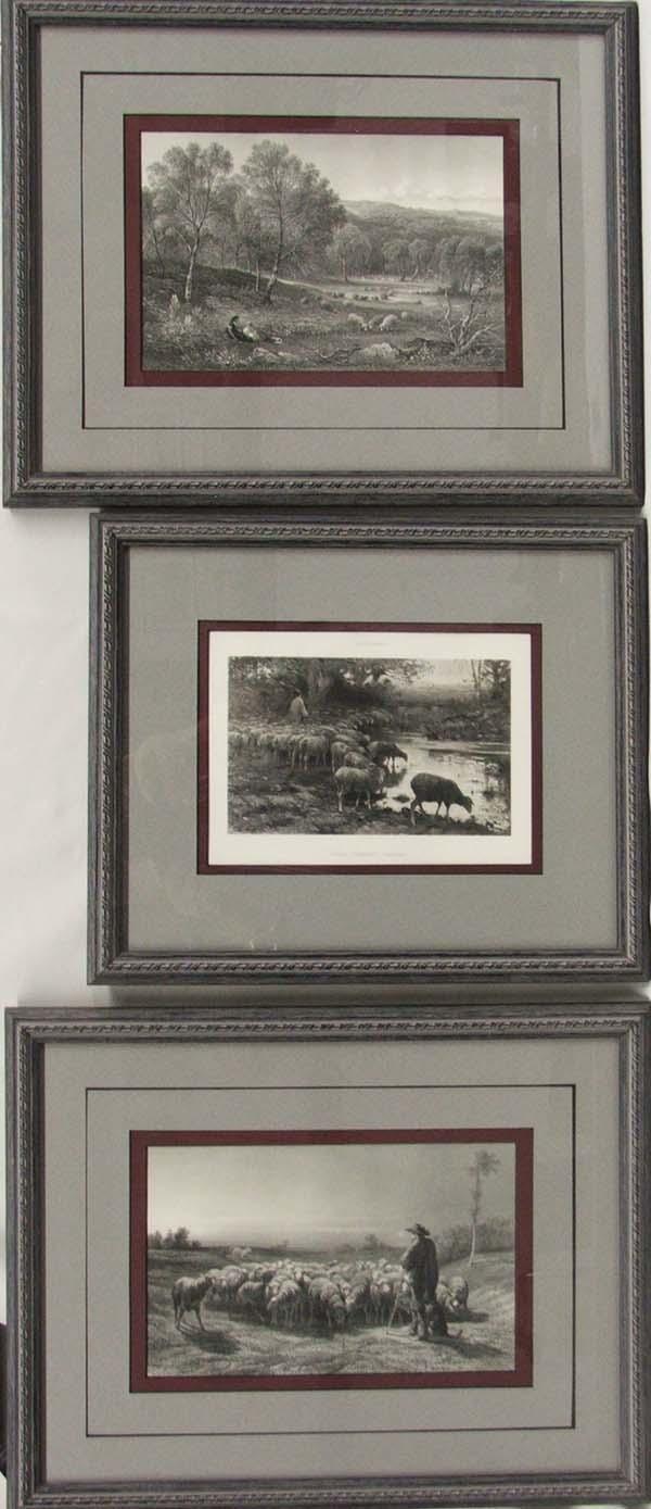 3 Framed and Matted Black and White Sheep Prints. The smallest print is titled ''Sheep Drinking; Twilight''. The largest visual measures approx. 6.5''Hx9.75''W, the largest frames measure approx. 13.5''Hx17''W. Buyers Pay Actual Shipping and Handling Charges(see terms and conditions for more information).