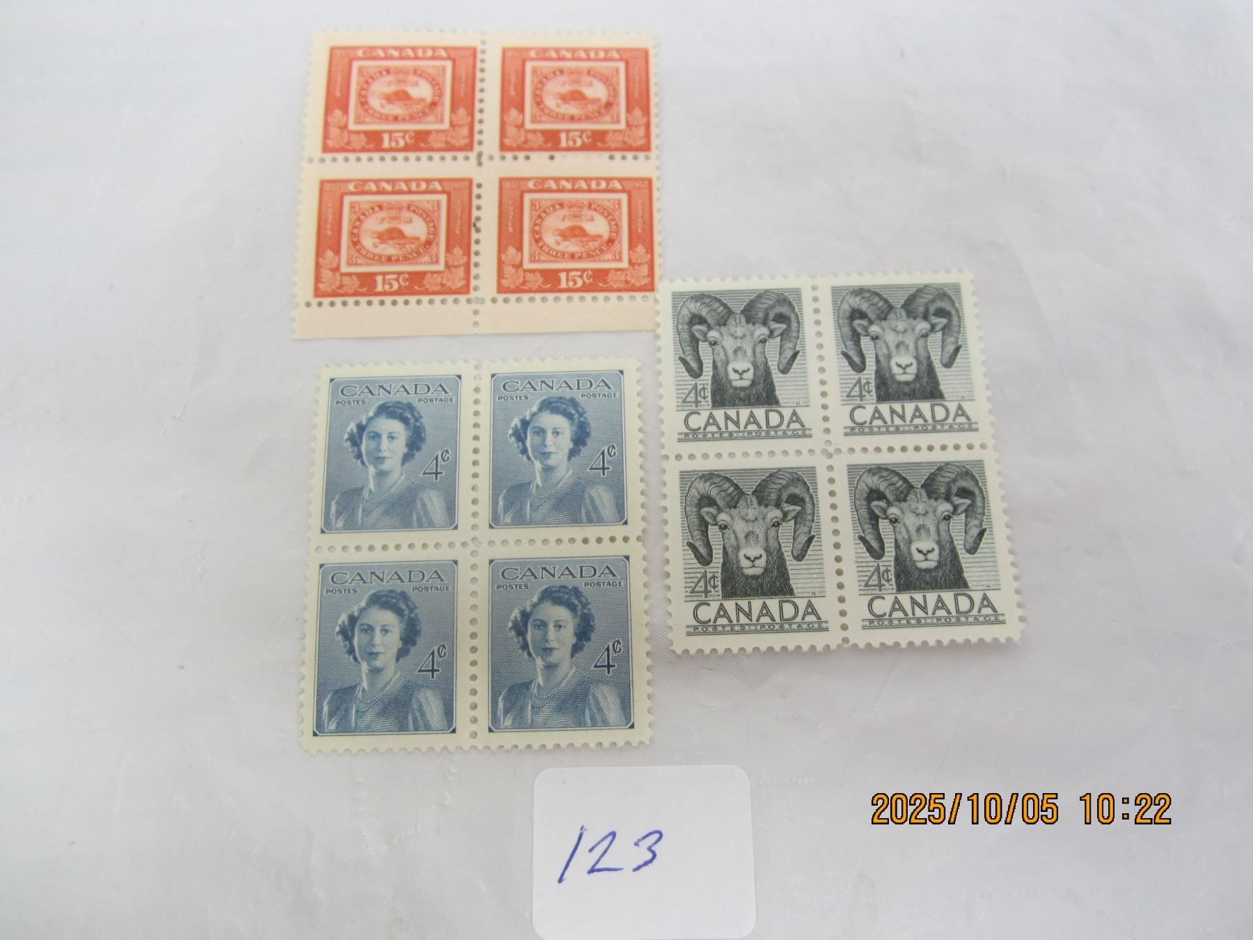 3 Blocks of 4 Canadian Stamps Sheep ,Beaver and Queen MNH OG Never Used