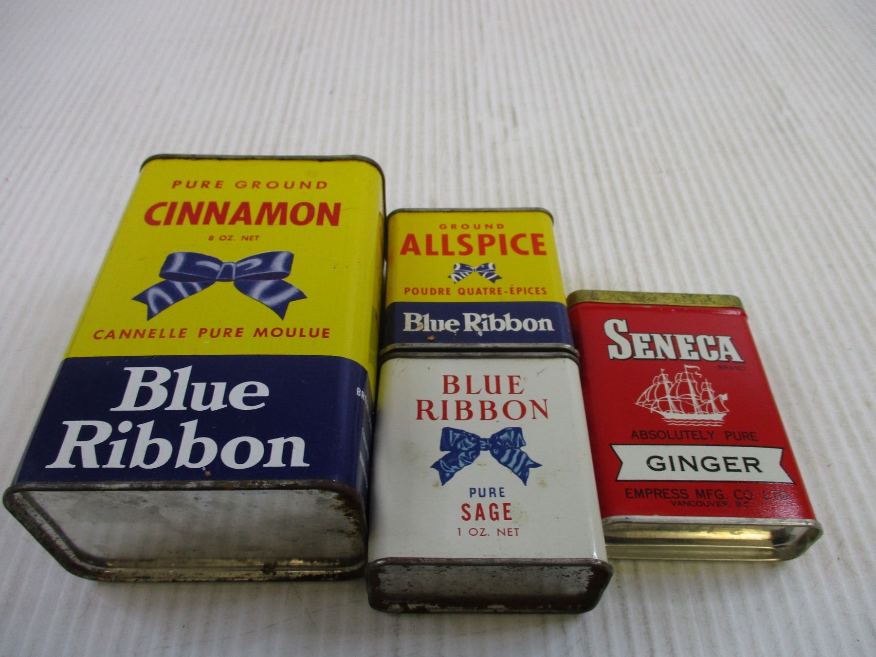 (3) Blue Ribbon Spice Tins + Seneca Tin