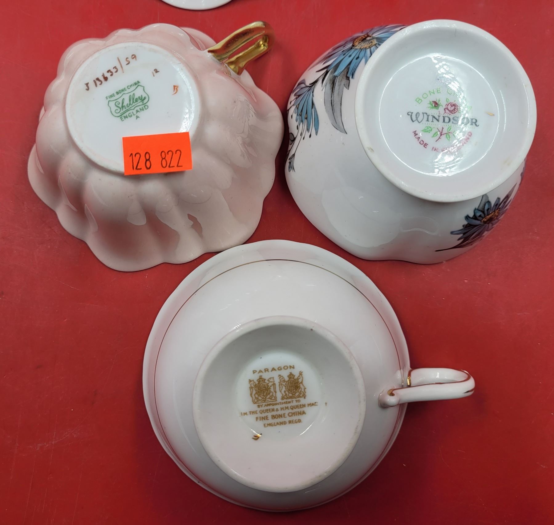 3 Bone China Teacups & 2 Saucers (Paragon, Shelley, & Windsor)