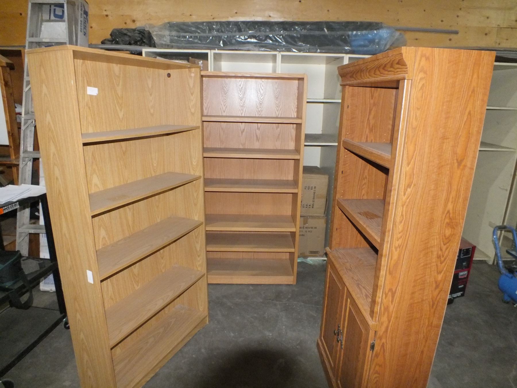 3 Book Shelves, you get all 3 for one money, 11"w 11 1/2"d 6ft h, 3ft w 15"d 72"h, 30"w 12"d 71 1/2"h...used